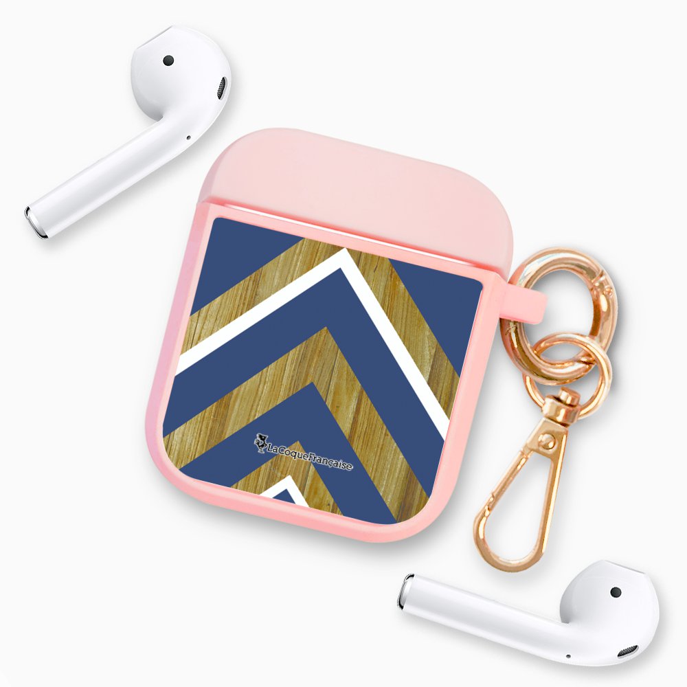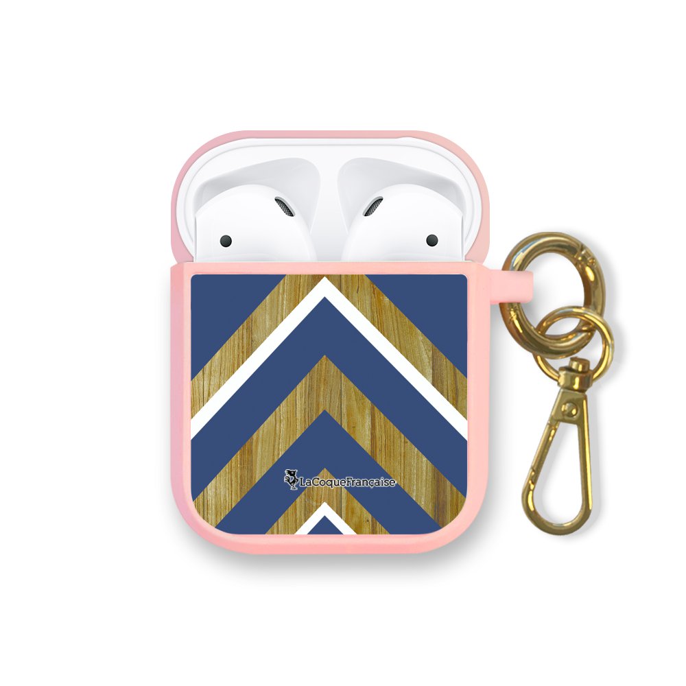 Housse pour Airpods silicone liquide rose Trio bleu marine bois Motif Ecriture Tendance La Coque Francaise