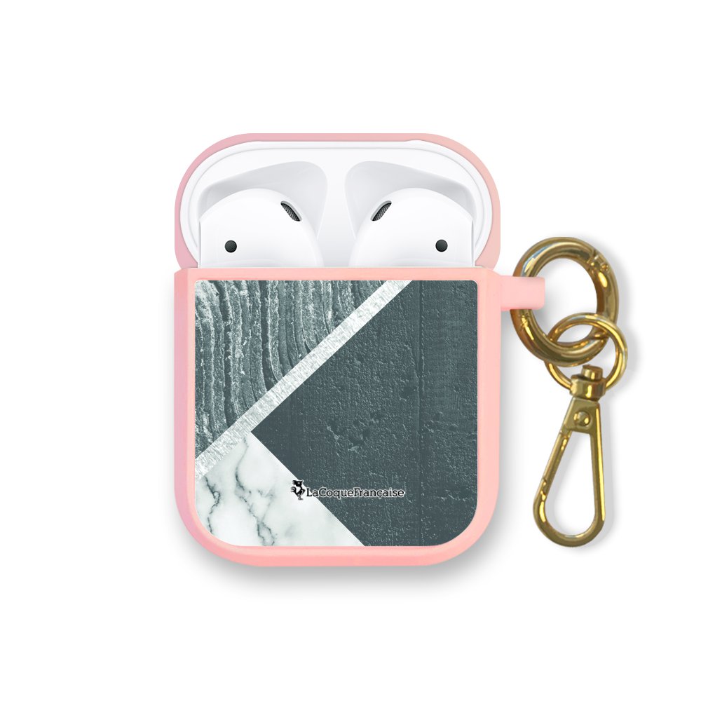 Housse pour Airpods silicone liquide rose Trio béton brut Motif Ecriture Tendance La Coque Francaise