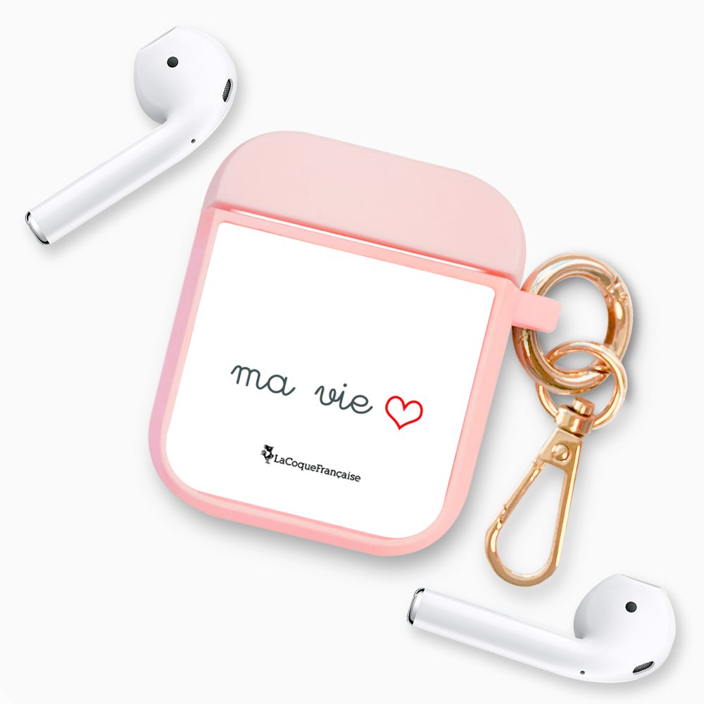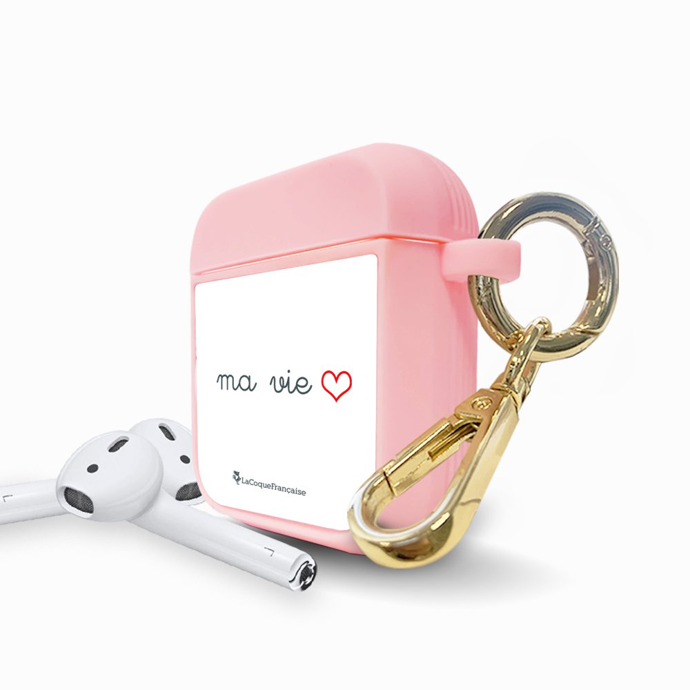 Housse pour Airpods silicone liquide rose Ma vie Motif Ecriture Tendance La Coque Francaise