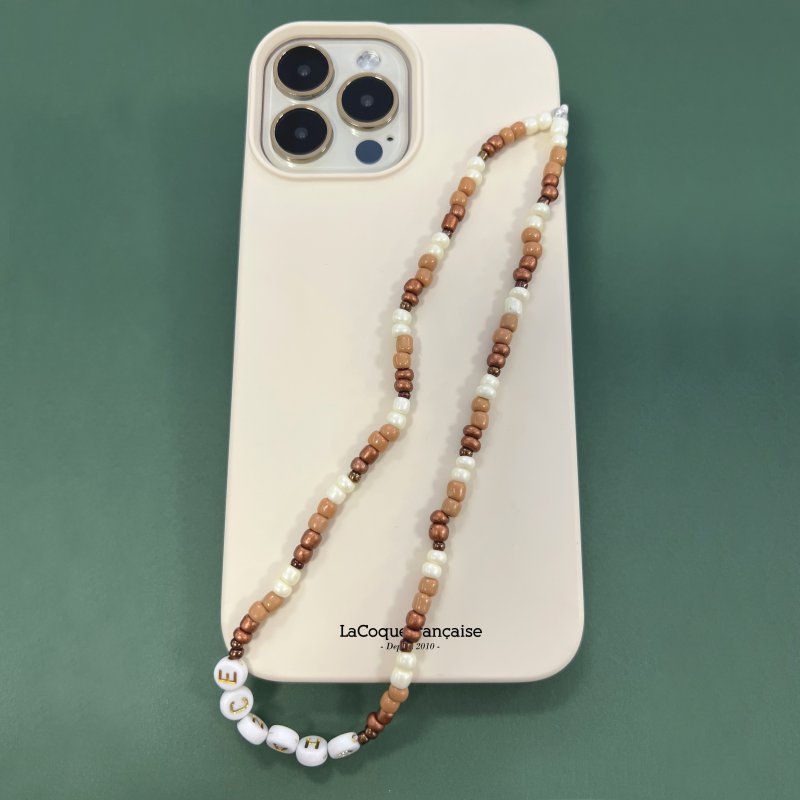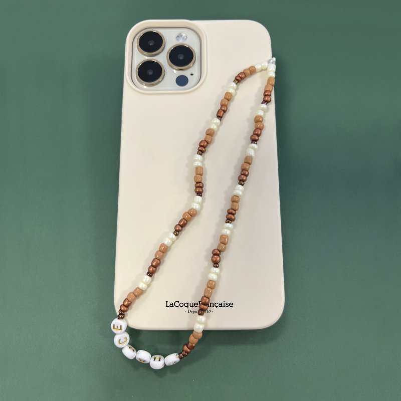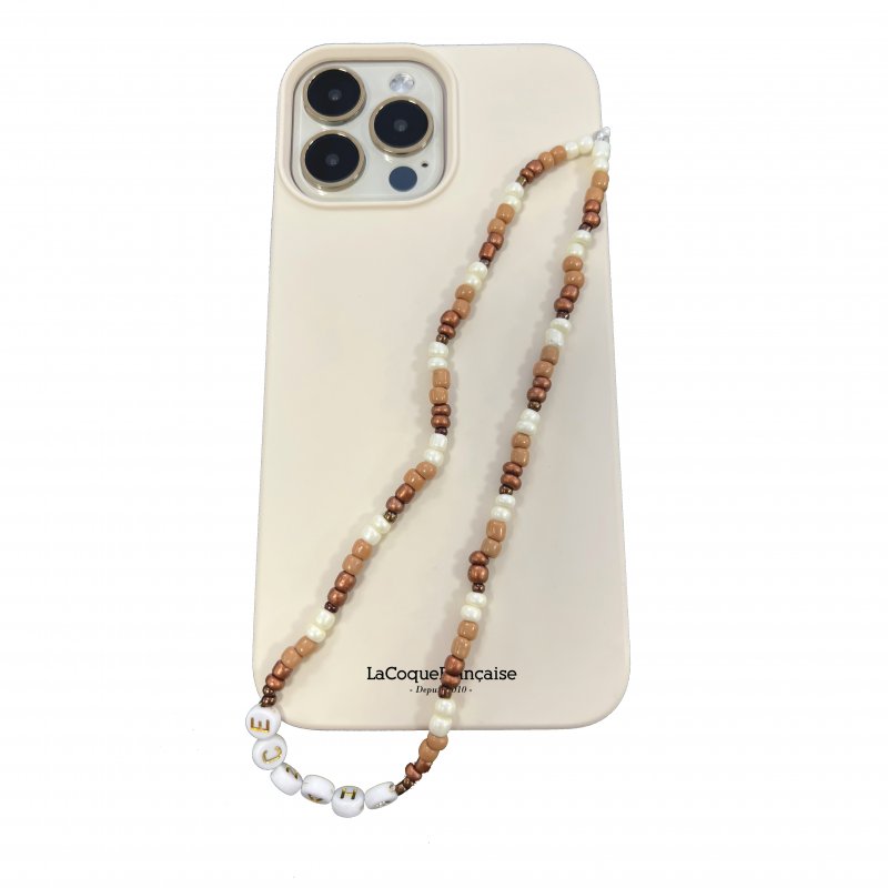 • Bijoux de téléphone Maya 30 cm perles beiges avec mousquetons dorés