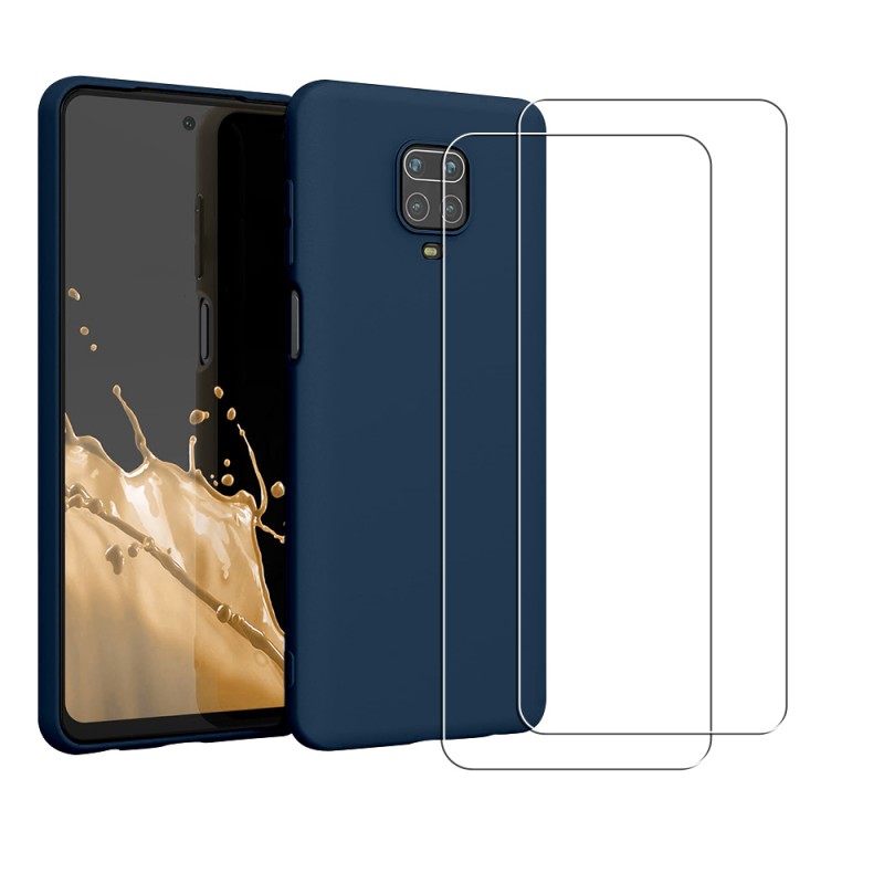 • > High Tech>Coque + 2 Vitres Offertes >Coque Xiaomi Redmi Note 9s/ 9 Pro/9 Pro Max Silicone liquide Bleue Marine + 2 Vitres en Verre trempé Protection écran Antichocs