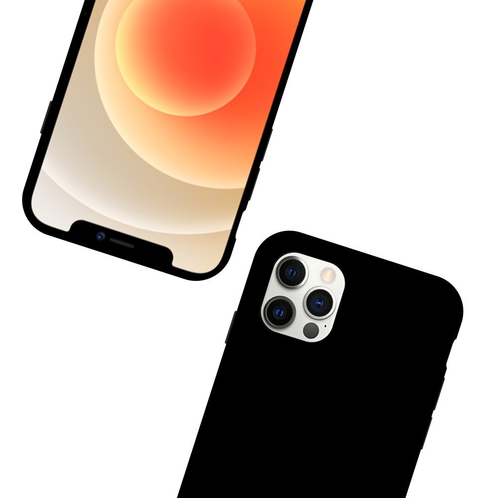 • > Coques >Coque iPhone 12/12 Pro Silicone liquide Noire + 2 Vitres en Verre trempé Protection écran Antichocs