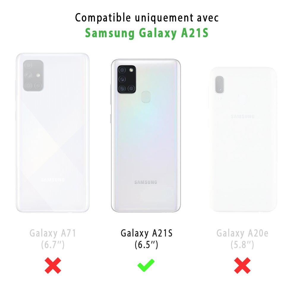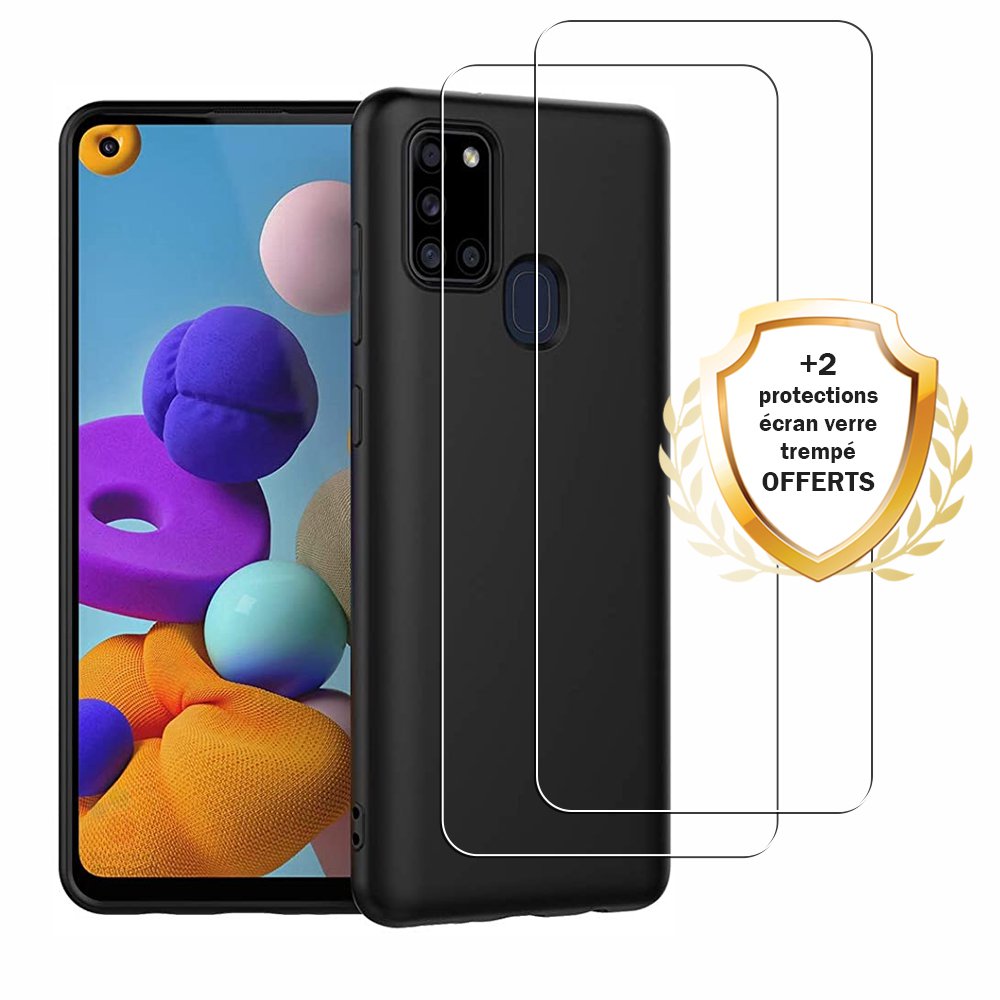 Coque souple au toucher doux ultra resistante spécialement conçue pour Samsung Galaxy A21S. Pack coque anti-choc + 2 Vitres en verre trempé pour une protection intégrale de votre Samsung Galaxy A21S contre les chocs, les rayures et la poussière. Les fonctionnalités tactiles de l'écran sont préservées. Compatible avec chargement sans fil (induction)