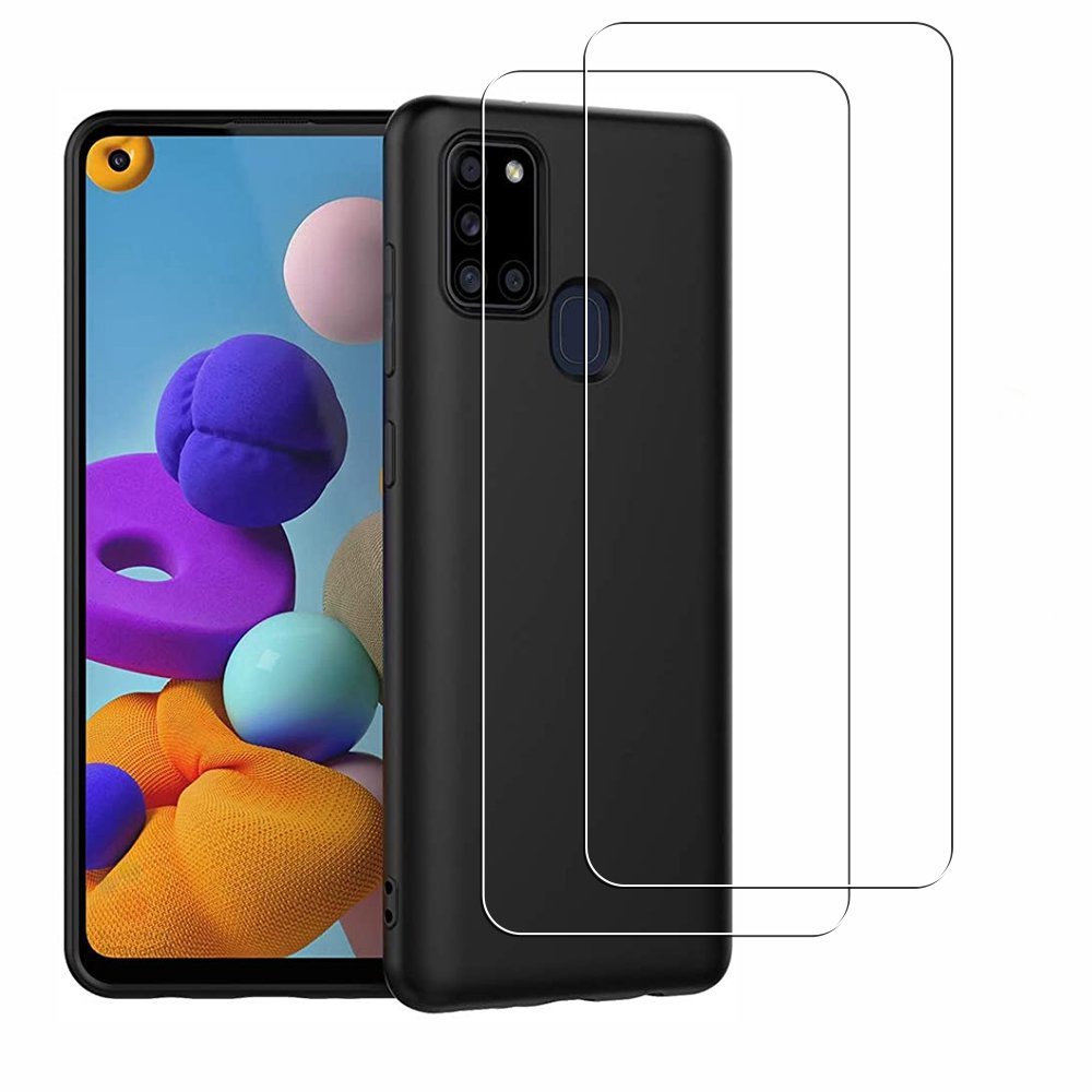 •  Coque Samsung Galaxy A21S Silicone liquide Noire + 2 Vitres en Verre trempé Protection écran Antichocs