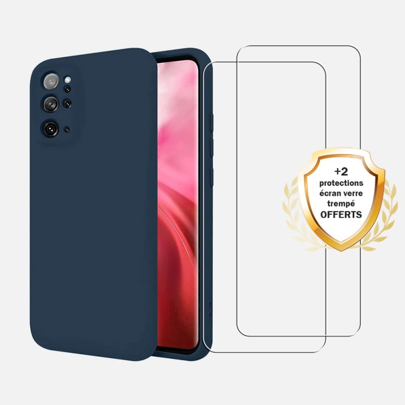 • Coque Samsung Galaxy S20 Plus Silicone liquide Bleu Marine + 2 Vitres en Verre trempé Protection écran Antichocs