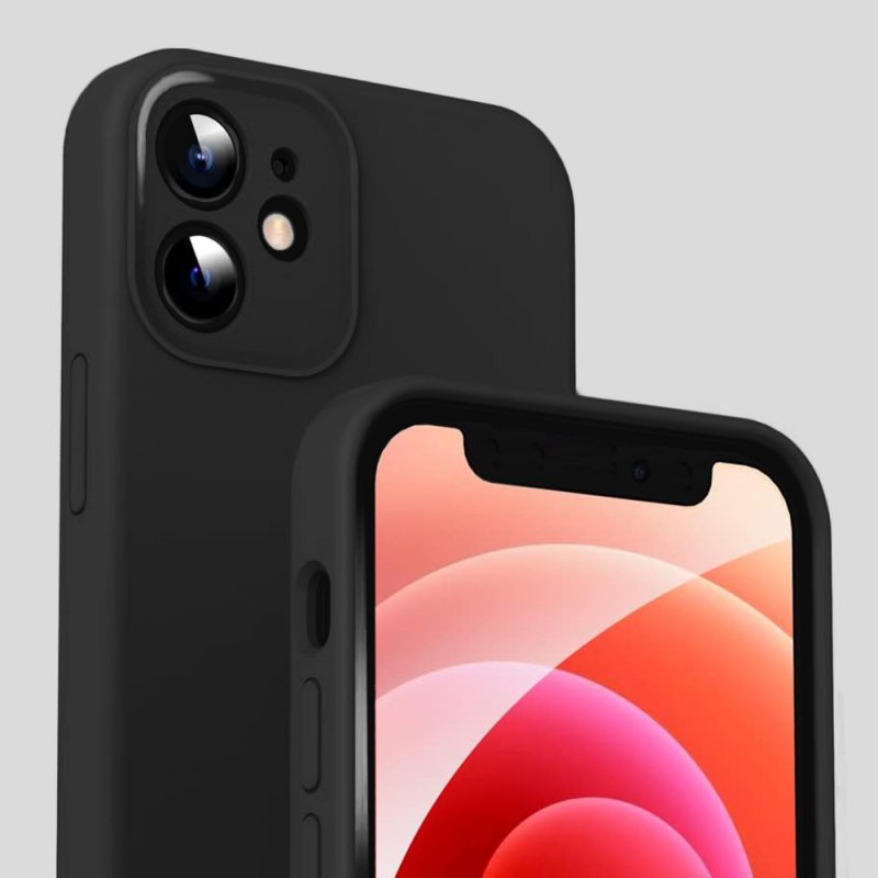 • Coque iPhone 12 Mini + 2 Vitres en Verre Trempé Noire Silicone liquide Compatible MagSafe