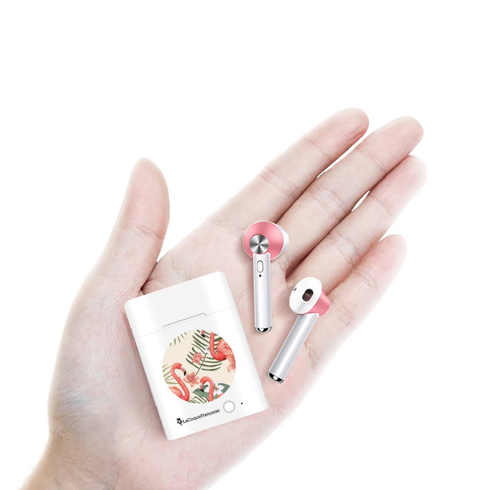 Ecouteurs Sans Fil Bluetooth Rose Gold Flamants Rose Ecriture Tendance et Design La Coque Francaise