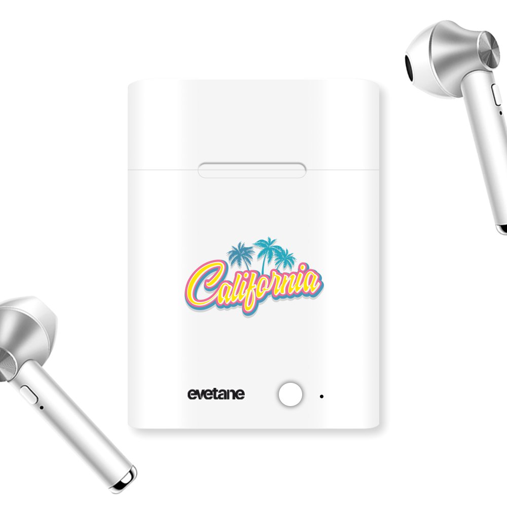 • Ecouteurs Sans Fil Bluetooth Argent argent California Ecriture Tendance et Design Evetane.