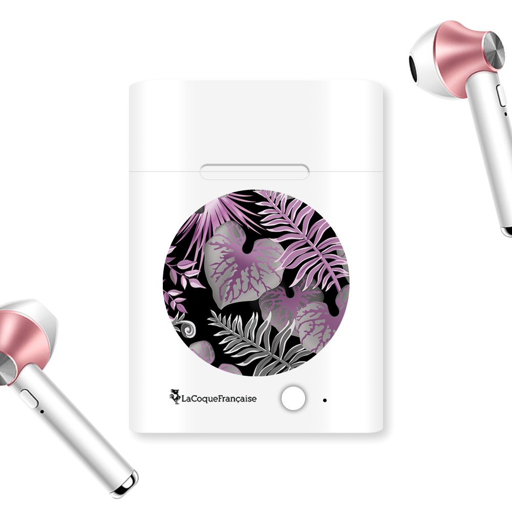 • > High Tech>Audio>Ecouteurs Bluetooth>Ecouteurs Sans Fil Bluetooth Rose Gold rose gold Fleurs Tropicales Parme Ecriture Tendance et Design La Coque Francaise.