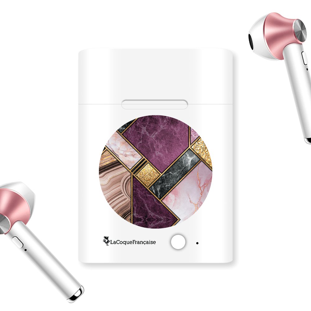 Ecouteurs Sans Fil Bluetooth Rose Gold Marbre Violet Ecriture Tendance et Design La Coque Francaise