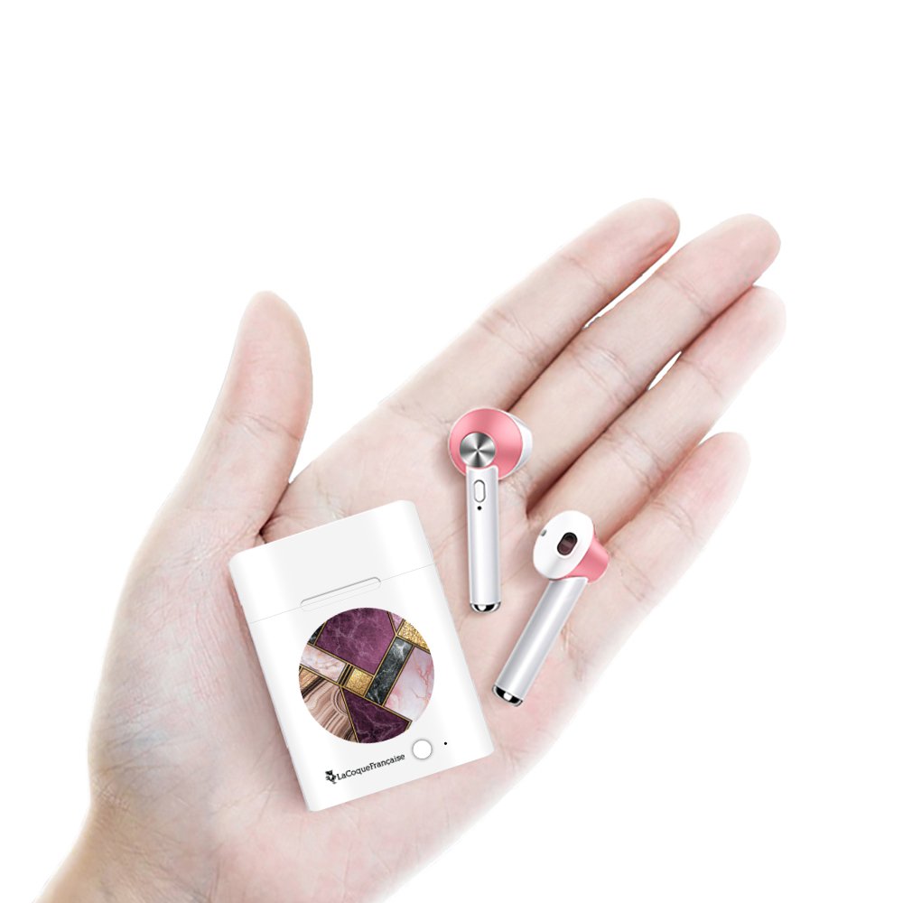 • Ecouteurs Sans Fil Bluetooth Rose Gold rose gold Marbre Violet Ecriture Tendance et Design La Coque Francaise.