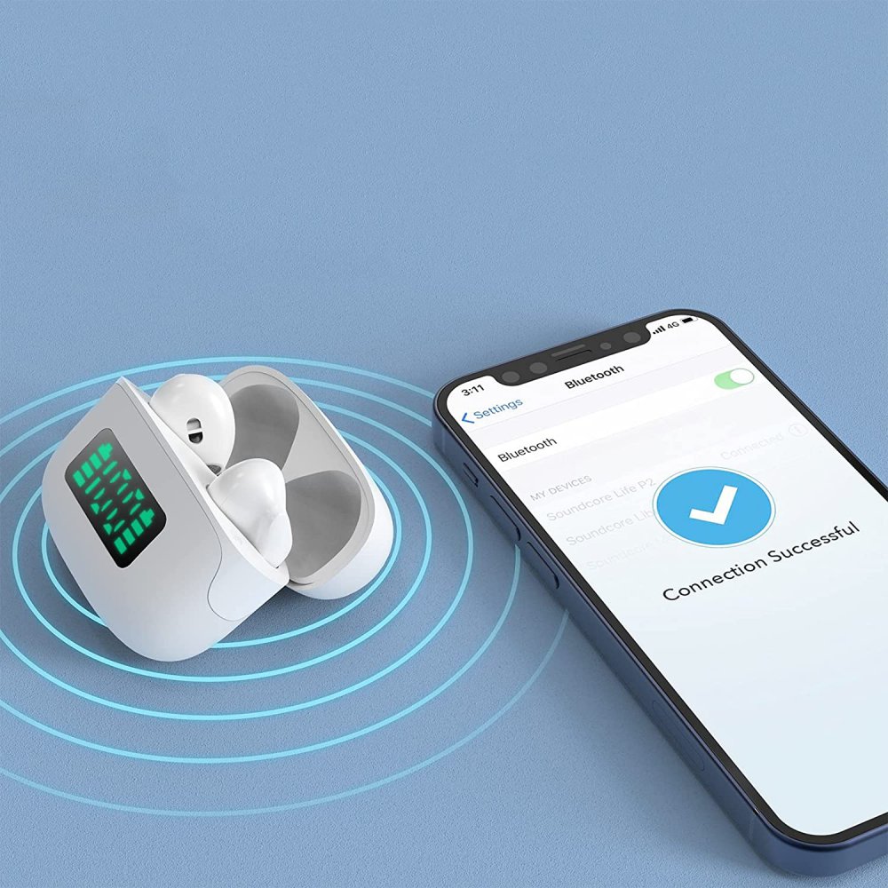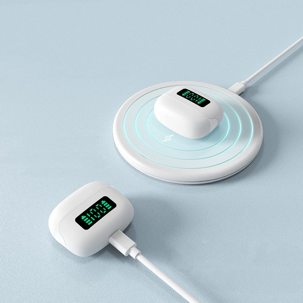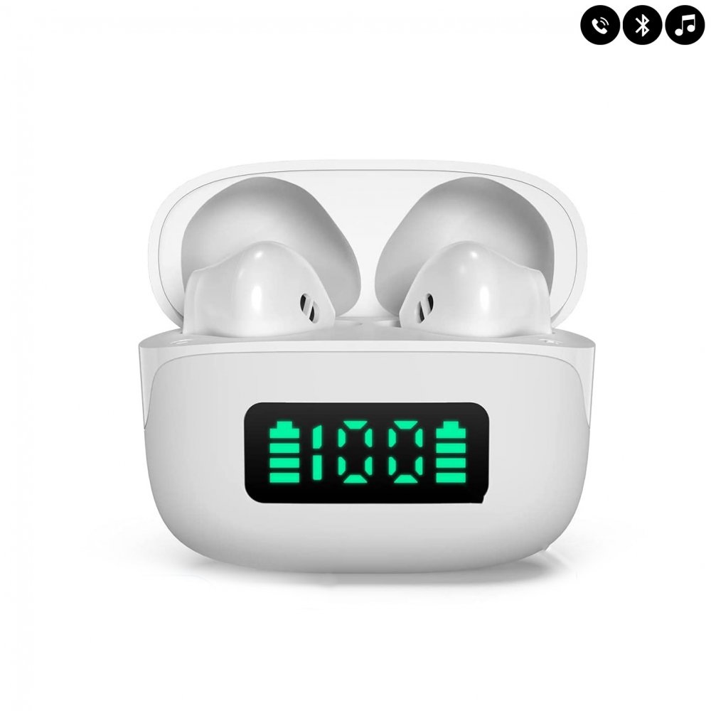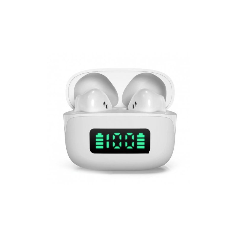 Ecouteurs Bluetooth avec affichage LEDProfitez d'écouter votre musique, de passer vos appels... tout en continuant vos activités grâce à la connexion bluetooth sans fil.Catégorie de produit : casque Bluetooth.Caractéristiques du casque : écran numérique d'alimentationPrise en charge des appels doubles.Appairage automatique.Mise sous tension automatique.Version Bluetooth : version 5.0.Distance de transmission : distance linéaire extérieure >= 10mCapacité du casque : 40 mAh*2Capacité de la batterie du boitier de charge : 400 mAh Fonctions : charge rapide, appel haute définition.Temps d'écoute de la musique : 5-6 heures de haut et bas, pause, volume additionnel et soustractionsAutonomie en appel : 5-6 heures.Autonomie en veille : 60 heuresTemps de charge : 2 heure.Poids net du chargeur et du casque : 46 g.Poids total : 90 g.Contenu :2 écouteurs Bluetooth.1 boitier.1 chargeur de type C.1 manuel d'utilisation