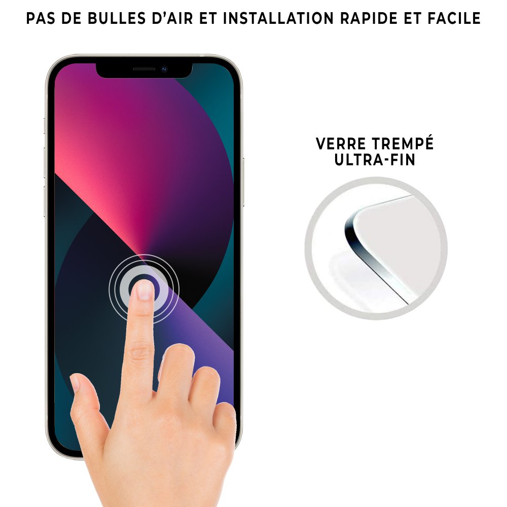 Vitre protectrice avant en verre trempé iPhone 13 Pro Max.Spécialement conçue aux dimensions de votre appareil.Garantit une protection maximale de votre écran face aux rayures et chocs du quotidien.Verre ultra-résistant, ultra fin, anti-rayure et anti-choc.Revêtement anti-bactériens et anti-éclatements. Application facile.Toucher ultra-agréable pour un grand confort d'utilisation.Ne recouvre pas les bords de votre Appareil.Cet article n'est pas compatible avec les téléphones iPhone 13/13 Pro et 13 Mini Grâce a une épaisseur de 0,3 mm seulement, le verre est pratiquement imperceptible et invisible et il assure un parfait confort d'utilisation.Ce verre protège votre écran contre les fissures, les rayures et les dommages. Une couche oléophobique vous garantit une clarté d'écran et une résistance aux empreintes digitales et la saleté.