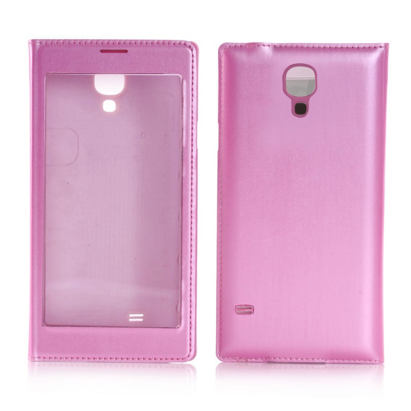 Etui livre rose à rabat transparent tactile pour Samsung Galaxy S4 I9500
