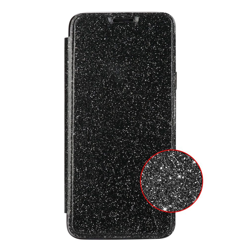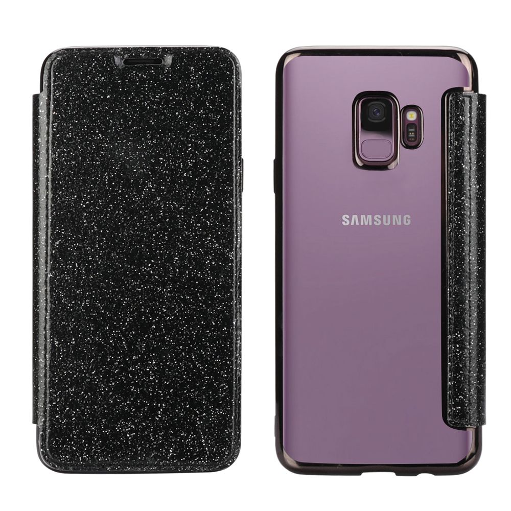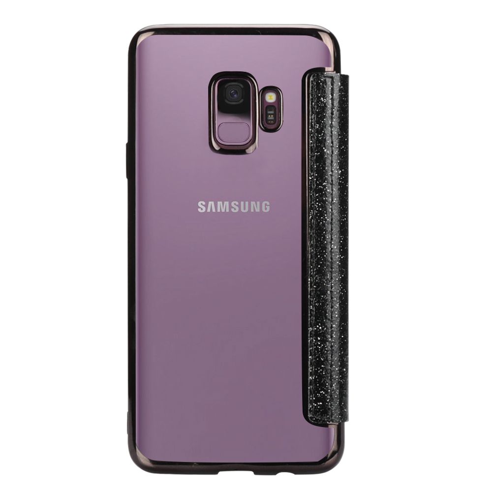 Etui de protection pailleté Noir avec coque arrière en silicone pour Samsung Galaxy S9