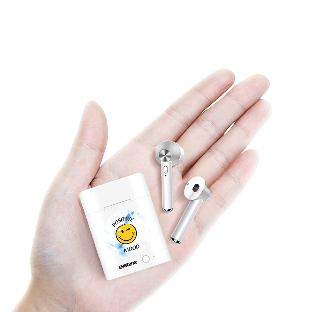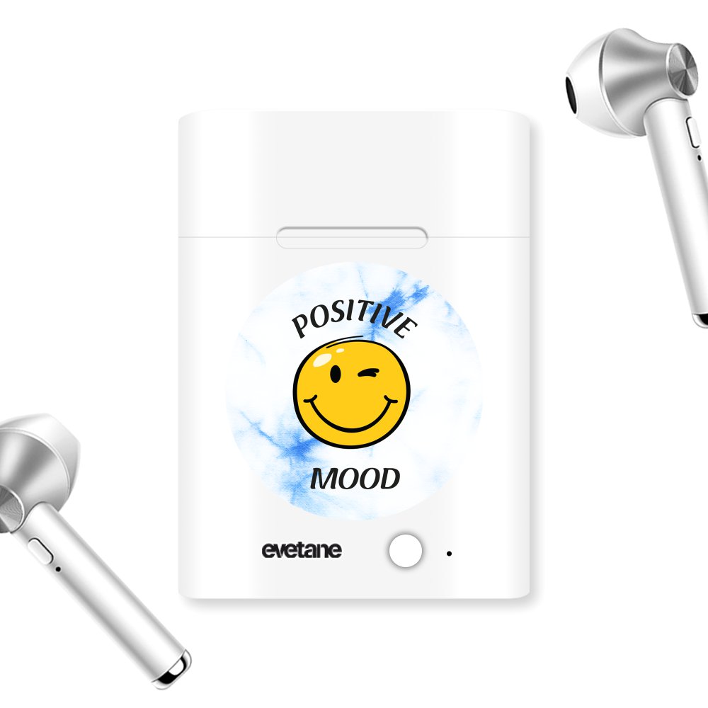 • Ecouteurs Sans Fil Bluetooth Argent Positive mood Ecriture Tendance et Design Evetane