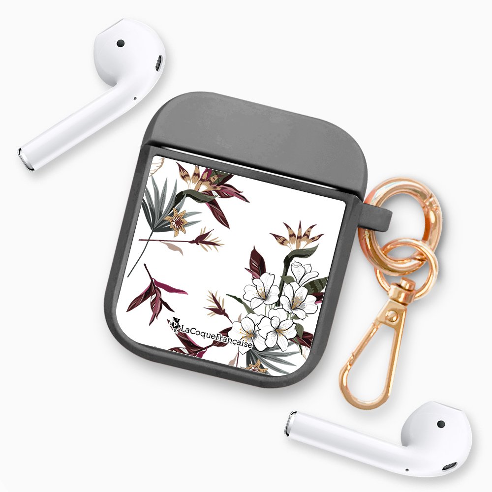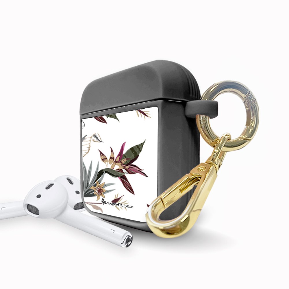 • Housse pour airpods silicone liquide noir Fleurs Tropicales Parme Motif Ecriture Tendance La Coque Francaise