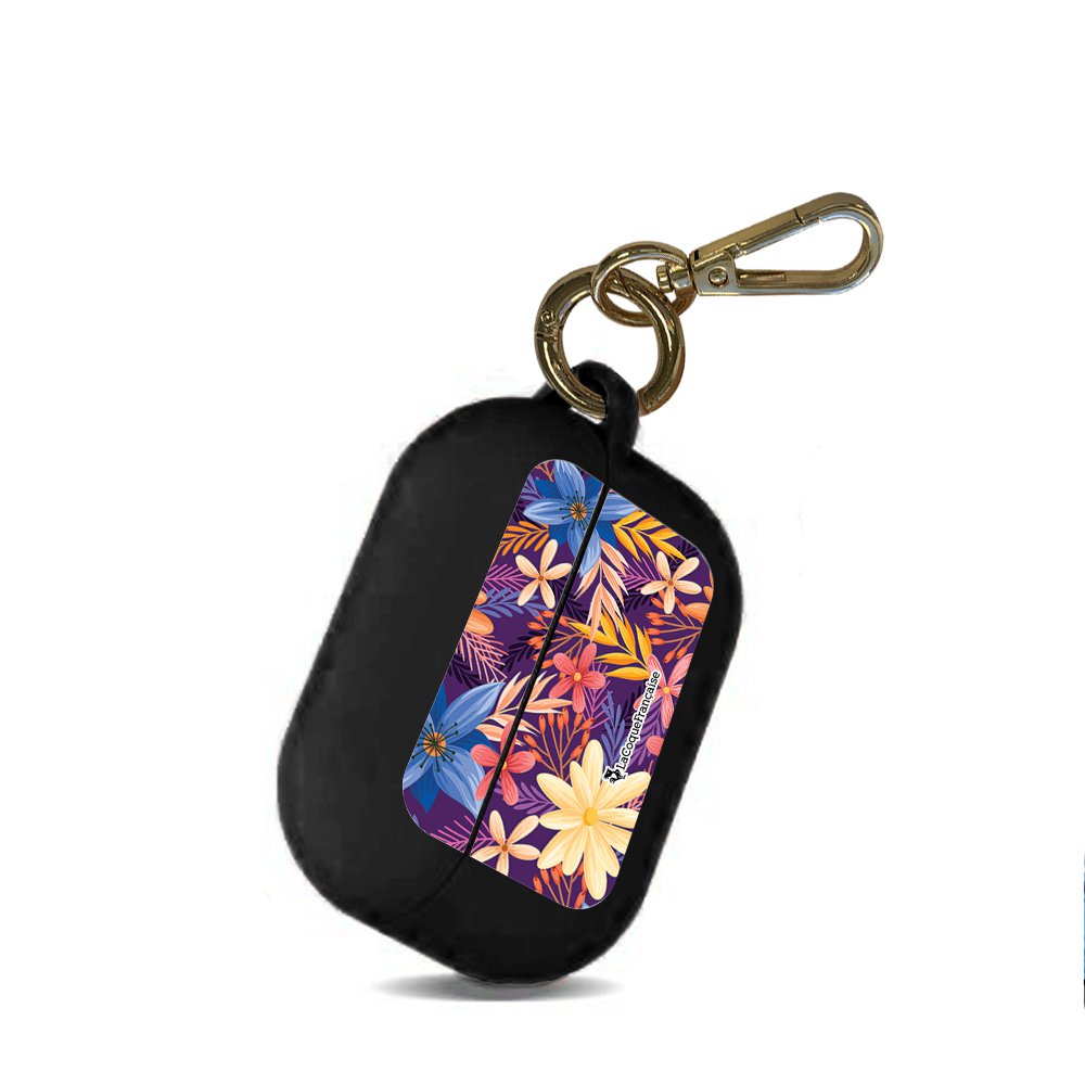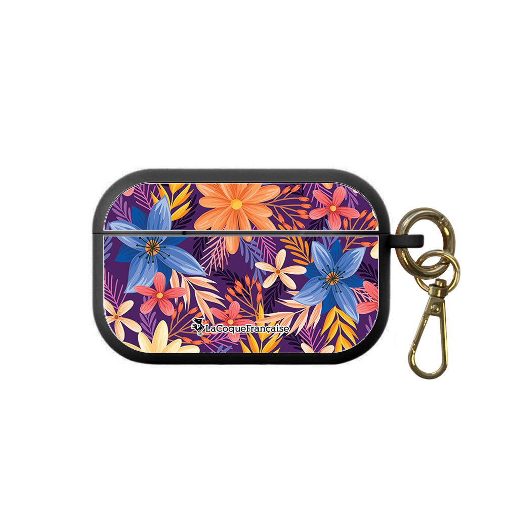 Housse pour Airpods Pro silicone liquide noir Fleurs violettes et oranges Motif Ecriture Tendance La Coque Francaise