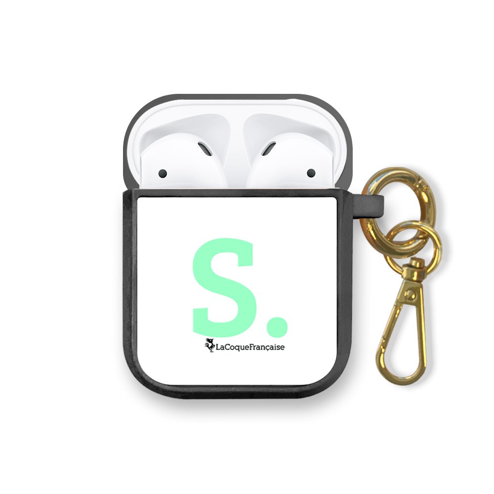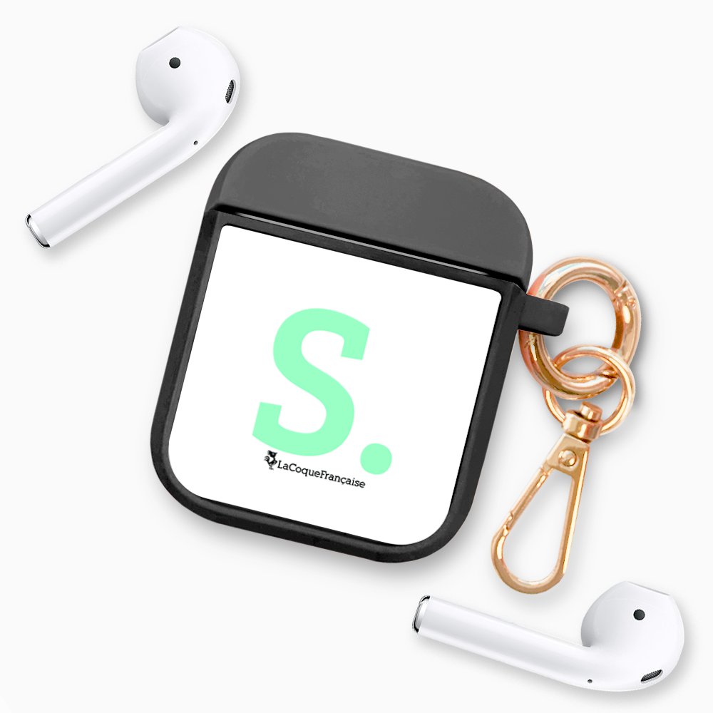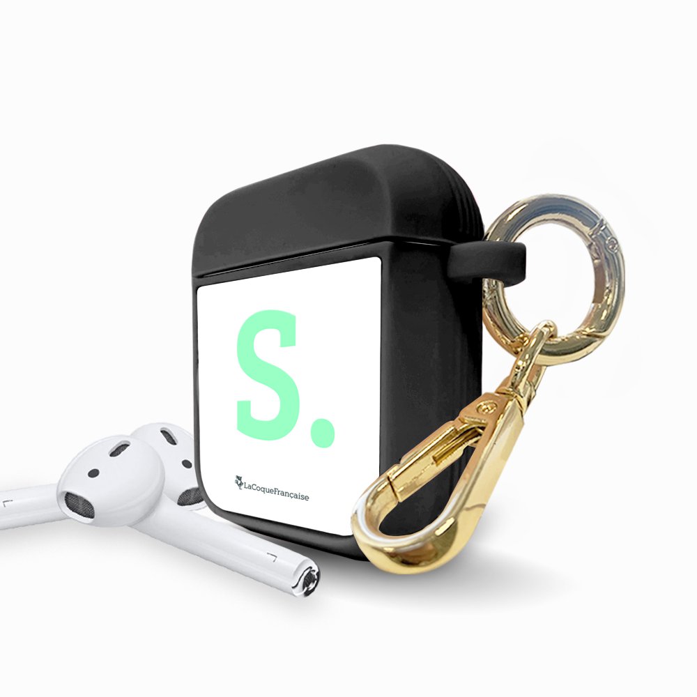 Housse pour airpods silicone liquide noir Initiale S Motif Ecriture Tendance La Coque Francaise