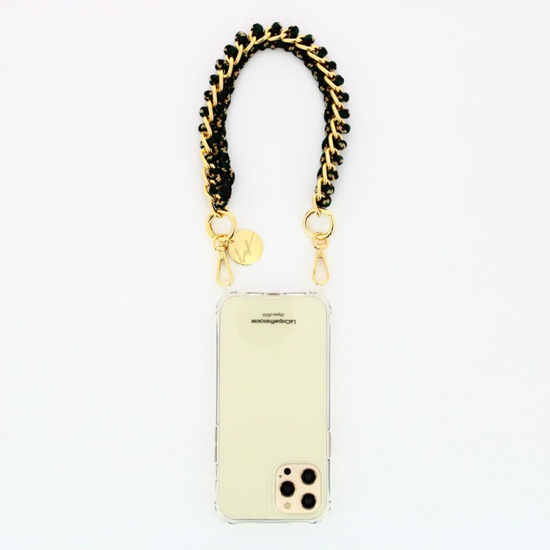 L'accessoire incontournable ! Plus besoin de chercher votre téléphone au fond du sac ou sur votre bureau, il vous suit de partout.Parfait pour avoir les mains libres tout en faisant autres choses, nos chaînes peuvent être portées à votre poignet ou à la main .Nos chaînes mesurent 40 cm, composées de métal et cordon, elles donneront une touche chic à vos tenues.Vous pouvez retirer la chaîne en toute simplicité et à tout moment, et l'échanger comme vous le souhaitez au grès de vos tenues et vos envies.Vous avez la possibilité d’adapter votre coque avec les différentes chaînes que nous proposons où garder un style plus sobre avec une lanière de votre choix.La coque est vendue séparément.