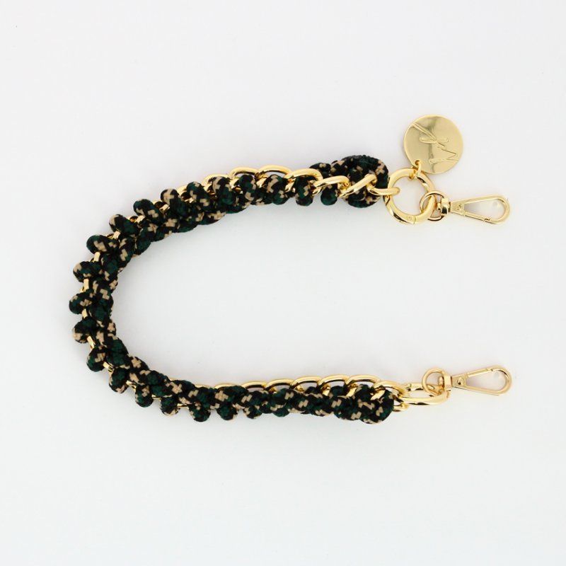 • > High Tech>Gadgets>Bijoux de téléphones>Bijoux de téléphone Romy avec mousquetons dorés 40 cm cordon tressé noir vert beige avec chaîne en metal