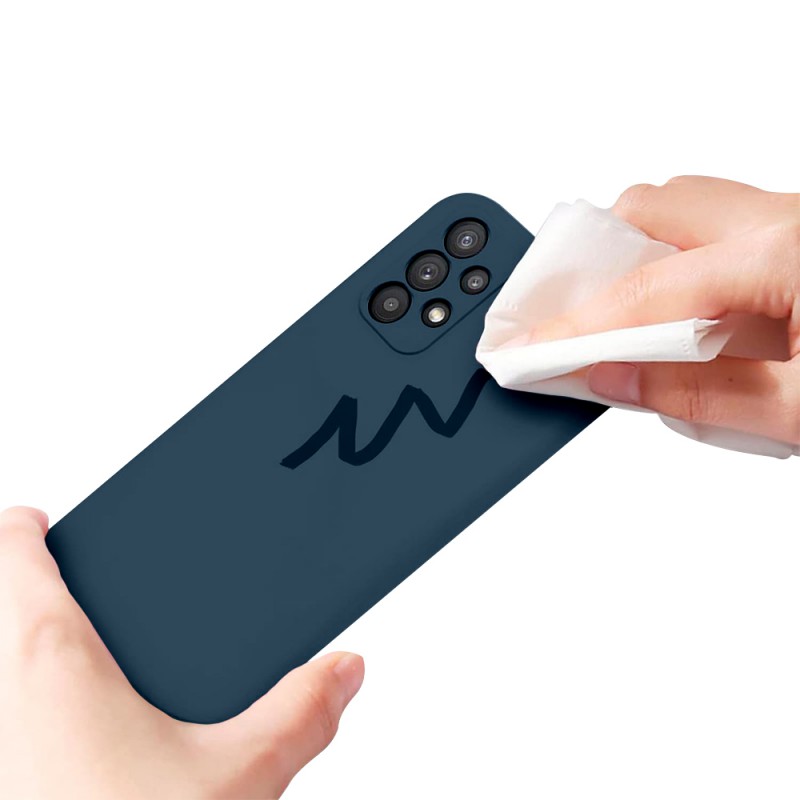 Pack coque silicone liquide bleue + 2 verres trempés, offrant une protection intégrale compatible avec votre Galaxy A32  contre les chocs, les rayures et la poussière. Compatible avec chargement sans fil (induction). Kit de nettoyage et d'installation inclus.