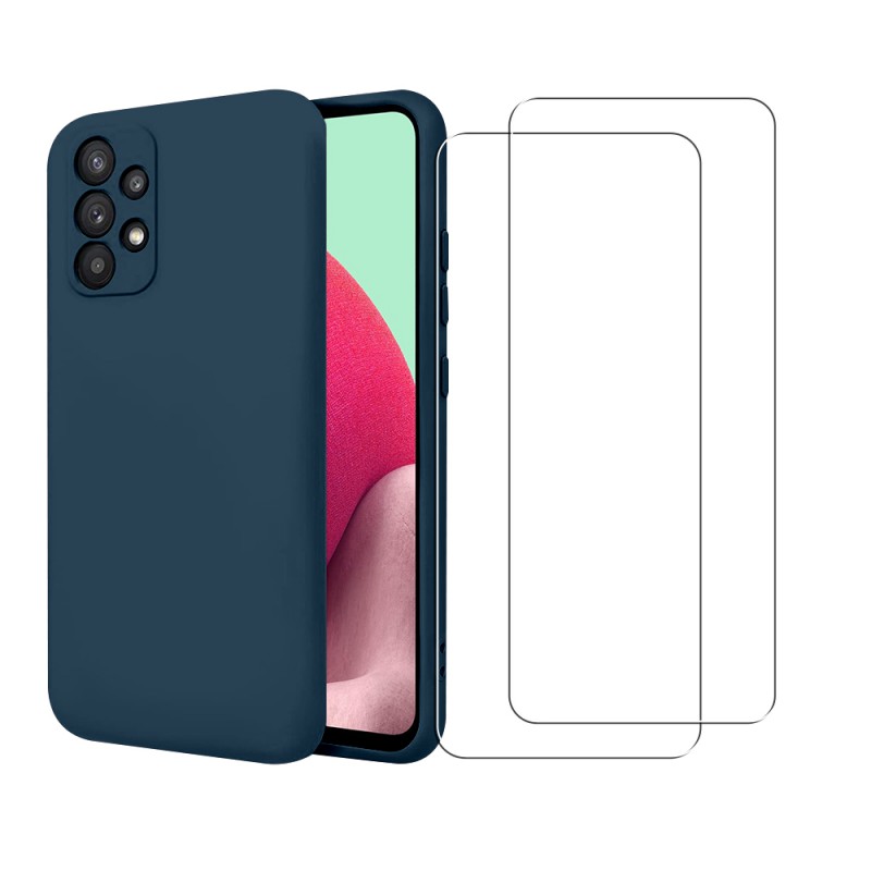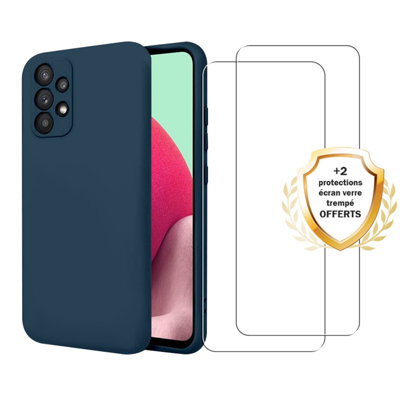 • Coque Samsung Galaxy A32 Silicone liquide Bleue Marine + 2 Vitres en Verre trempé Protection écran Antichocs