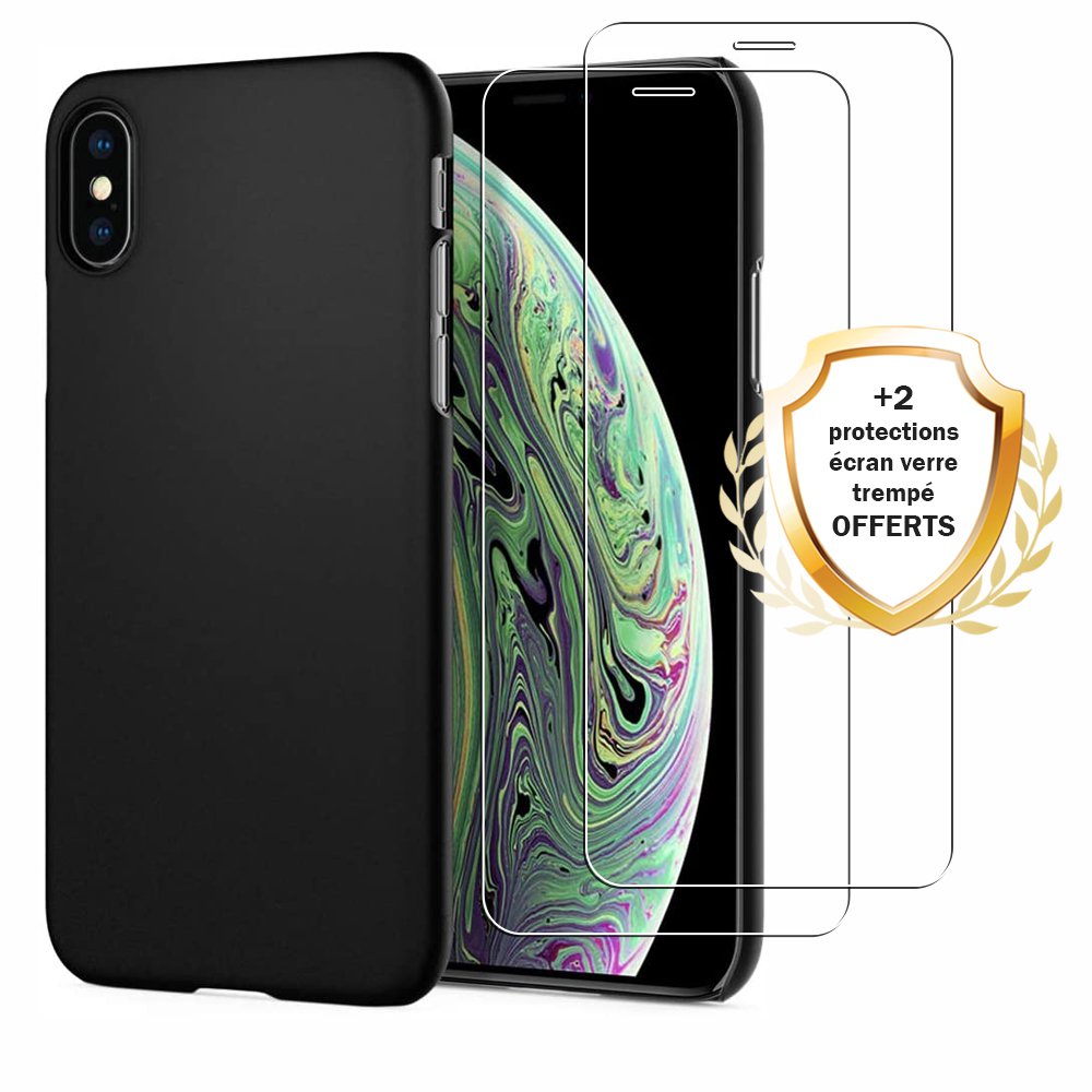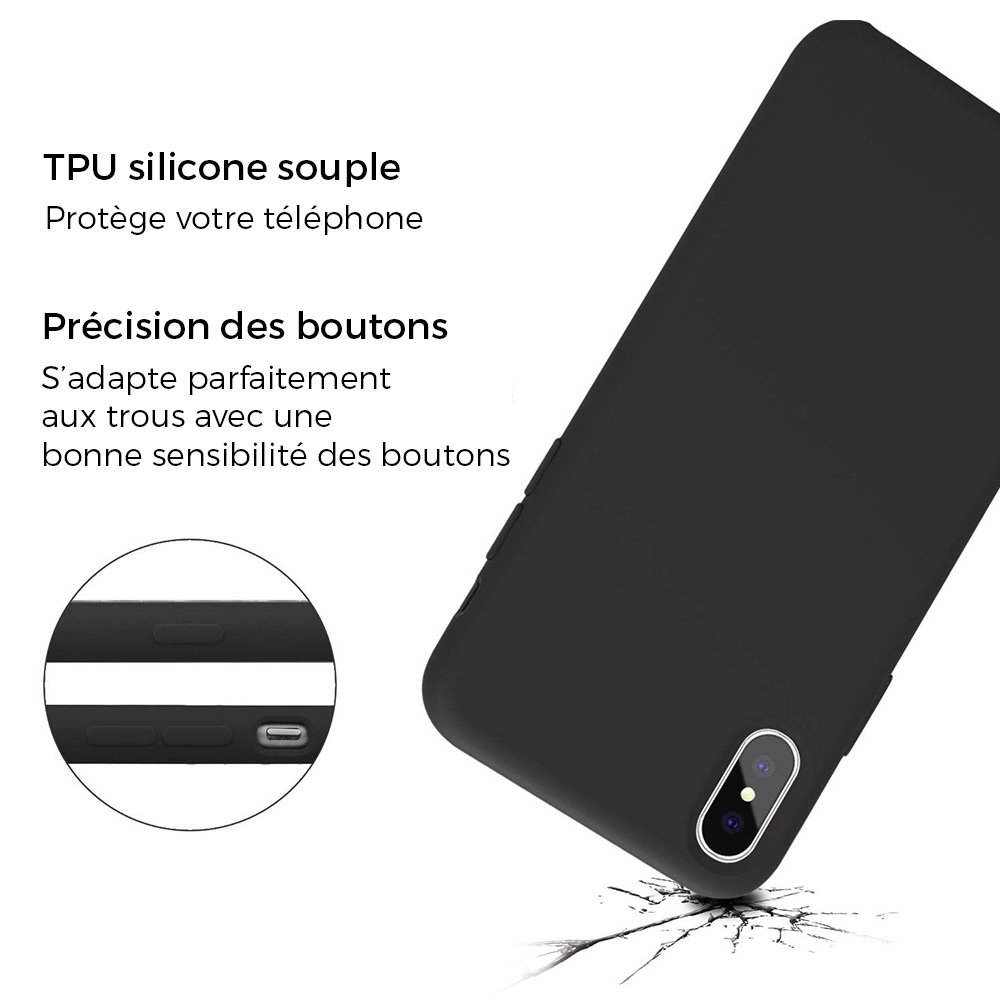 Coque souple au toucher doux ultra resistante spécialement conçue pour Apple iPhone XS. Pack coque anti-choc + 2 Vitres en verre trempé pour une protection intégrale de votre iPhone contre les chocs, les rayures et la poussière. Les fonctionnalités tactiles de l'écran sont préservées. Compatible avec chargement sans fil (induction)