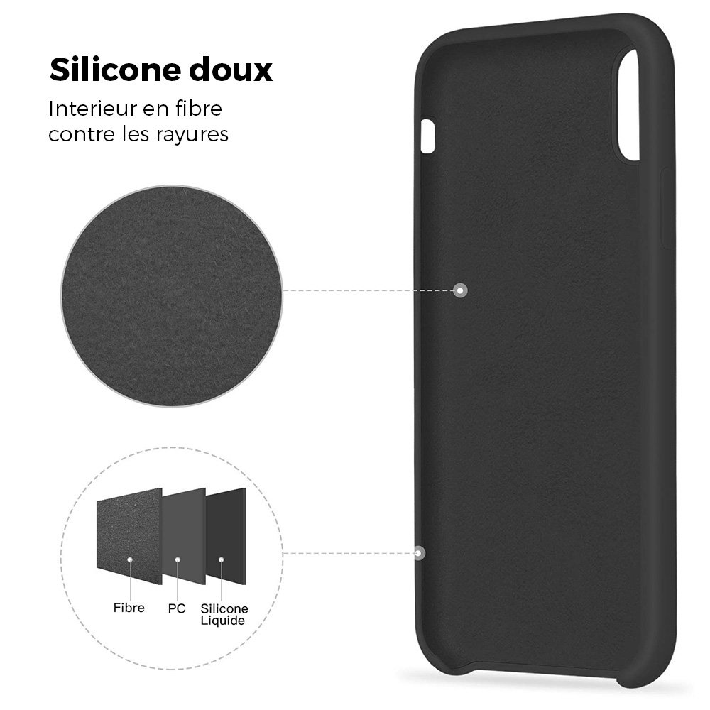 • > Coques>Coque iPhone X/XS Silicone liquide Noire + 2 Vitres en Verre trempé Protection écran Antichocs