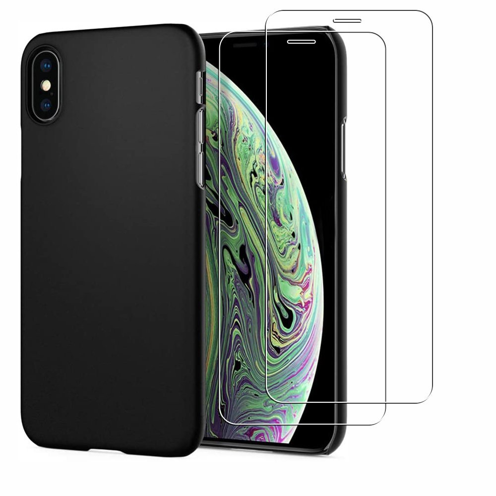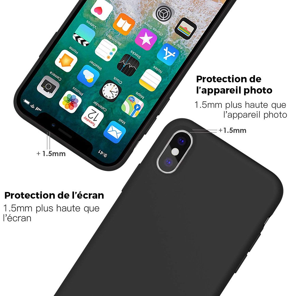 • Coque iPhone X/XS Silicone liquide Noire + 2 Vitres en Verre trempé Protection écran Antichocs