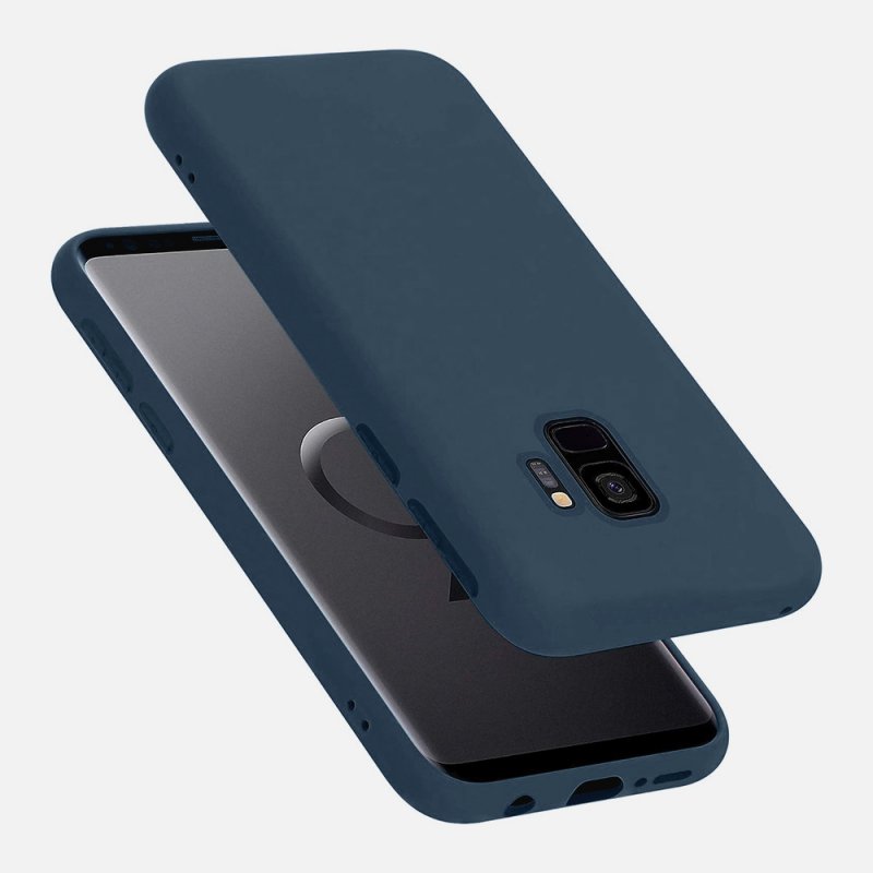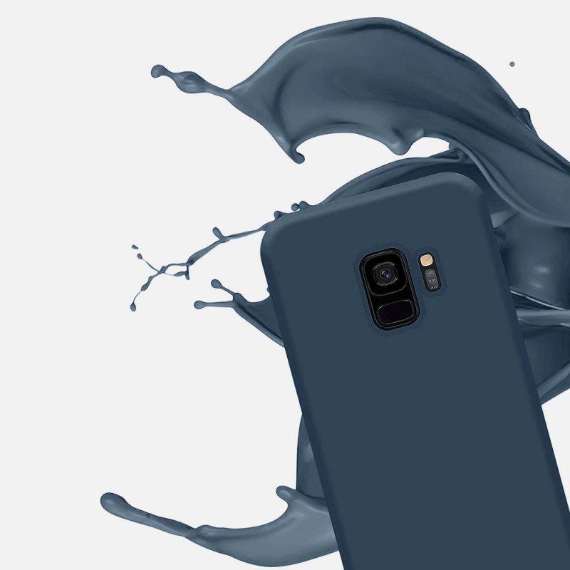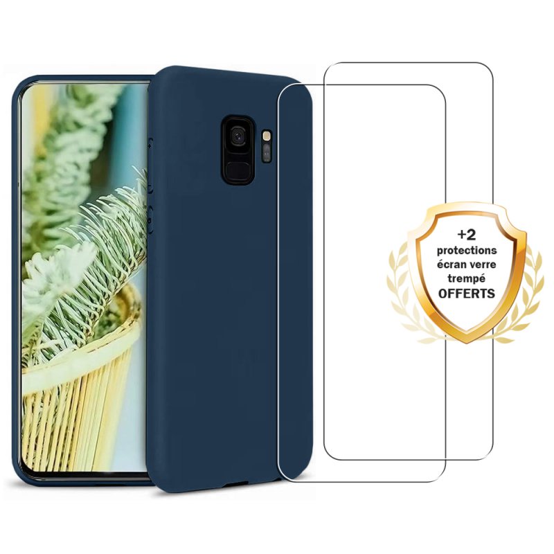 • > Coques>Coque Samsung Galaxy S9 Silicone liquide Bleu Marine + 2 Vitres en Verre trempé Protection écran Antichocs