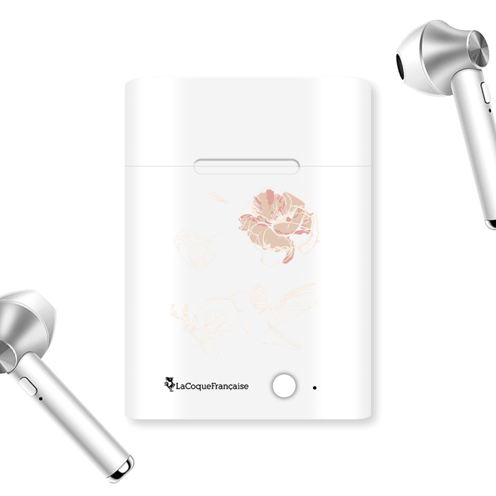 • Ecouteurs Sans Fil Bluetooth Argent argent Fleurs Blanches Ecriture Tendance et Design La Coque Francaise.