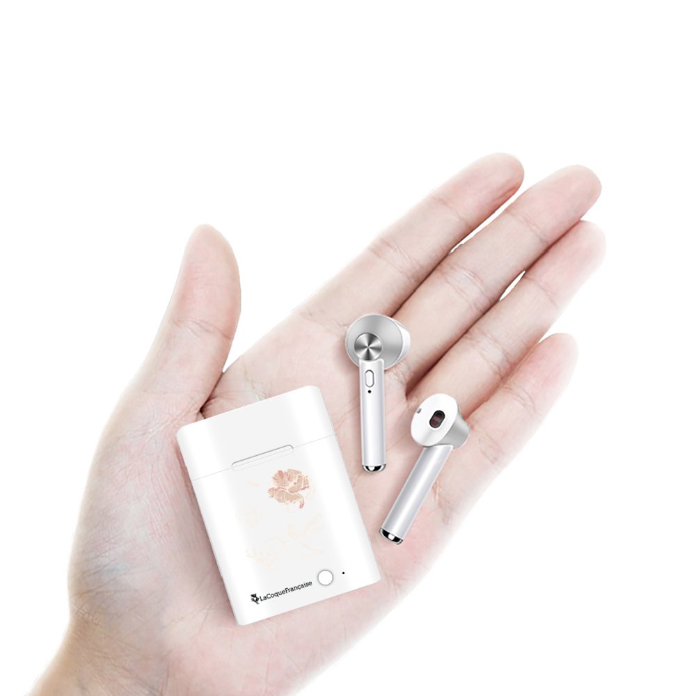 • > High Tech>Audio>Ecouteurs Bluetooth>Ecouteurs Sans Fil Bluetooth Argent argent Fleurs Blanches Ecriture Tendance et Design La Coque Francaise.