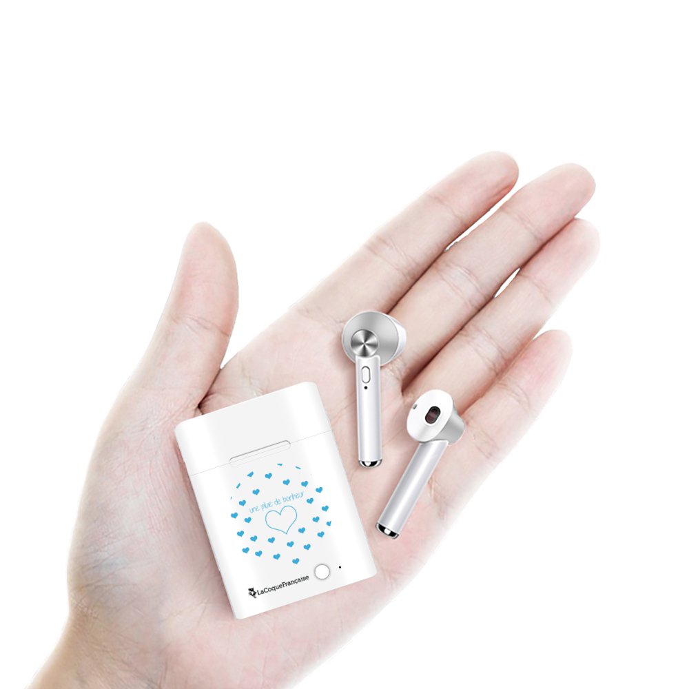 • > High Tech>Audio>Ecouteurs Bluetooth>Ecouteurs Sans Fil Bluetooth Argent argent Pluie de Bonheur Bleu Ecriture Tendance et Design La Coque Francaise.