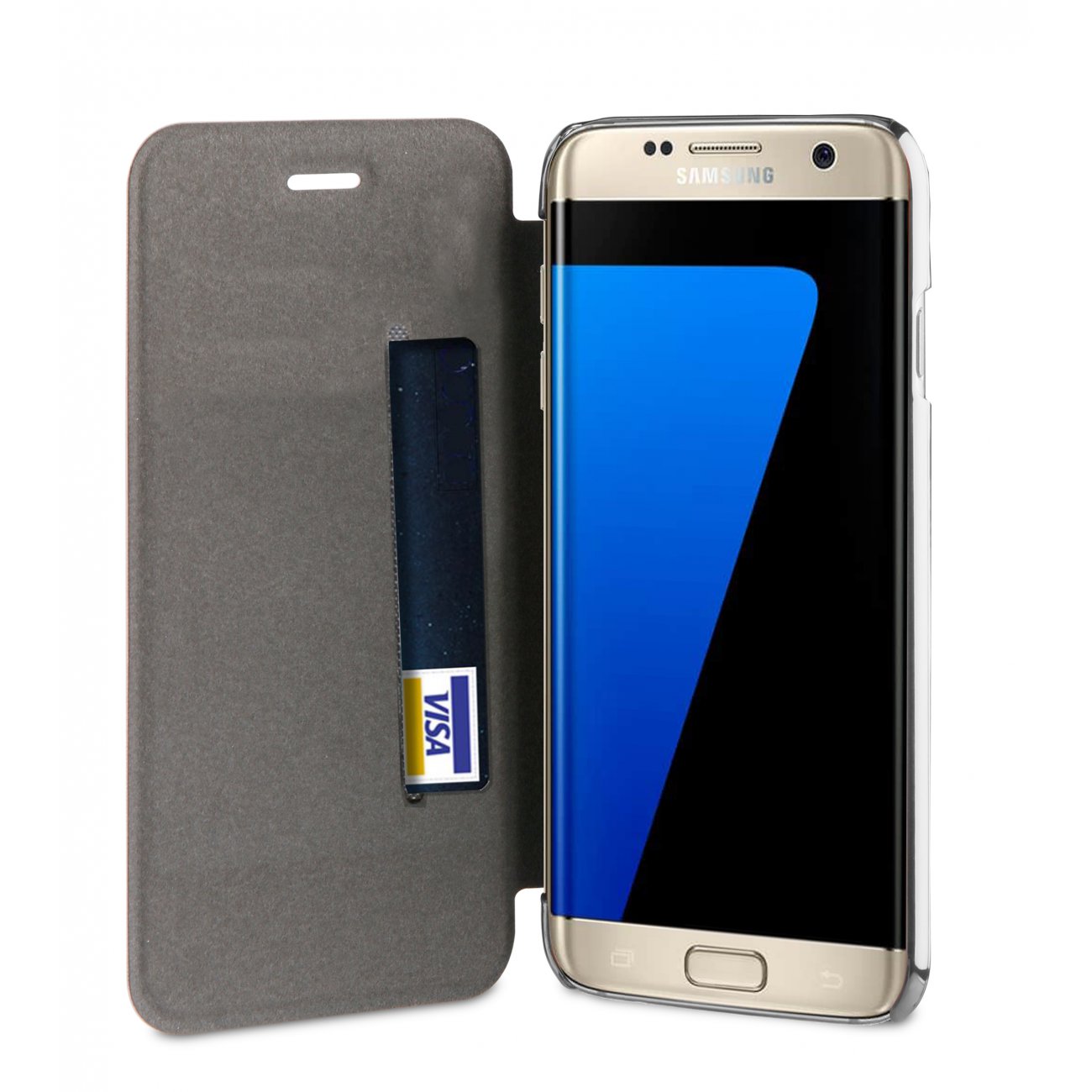• Etui folio argent avec coque arrière souple pour Samsung Galaxy S6 Edge