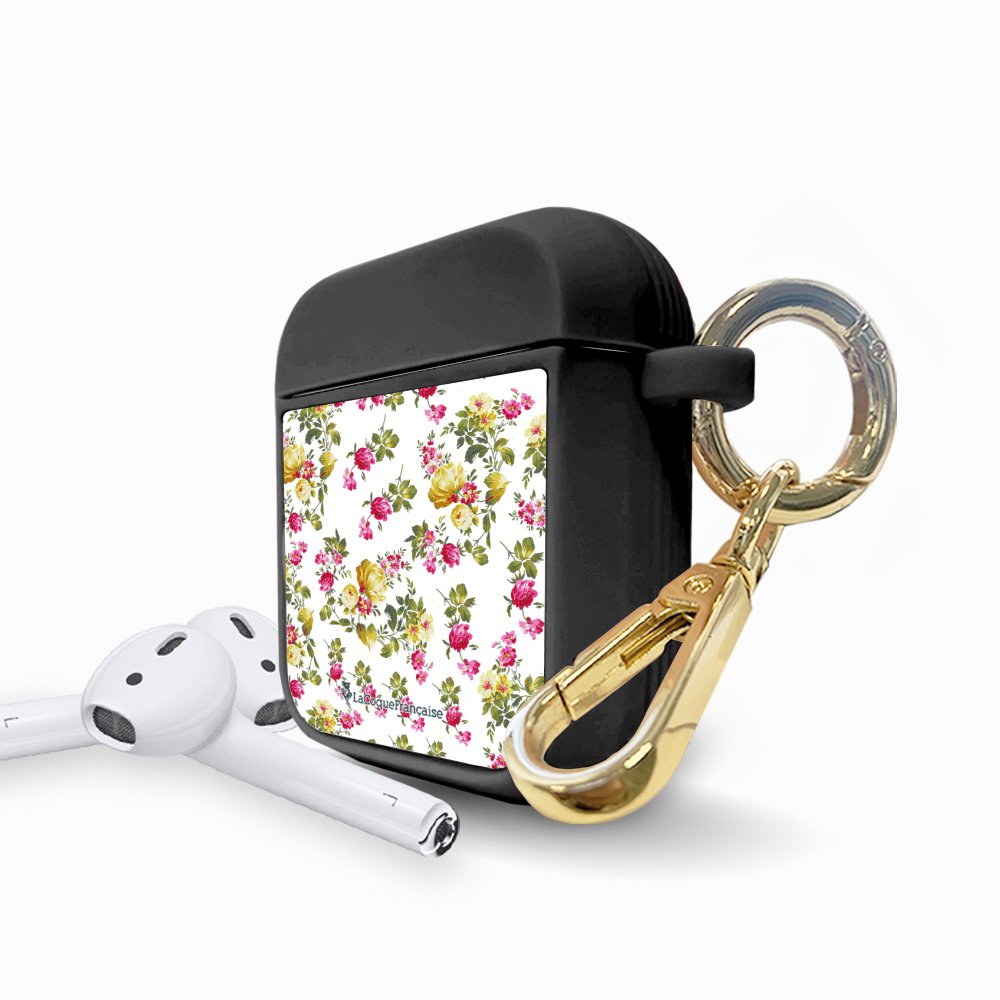 • Housse pour airpods silicone liquide noir Amour en fleurs Motif Ecriture Tendance La Coque Francaise