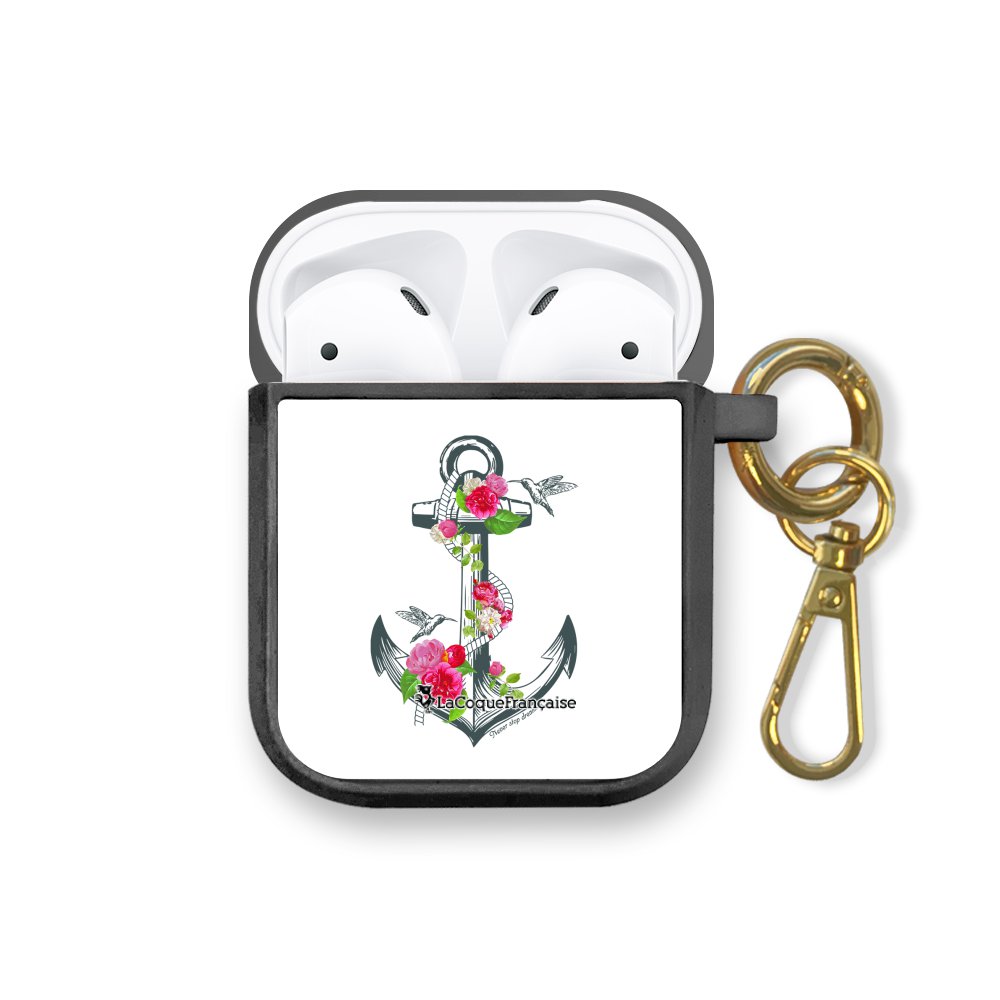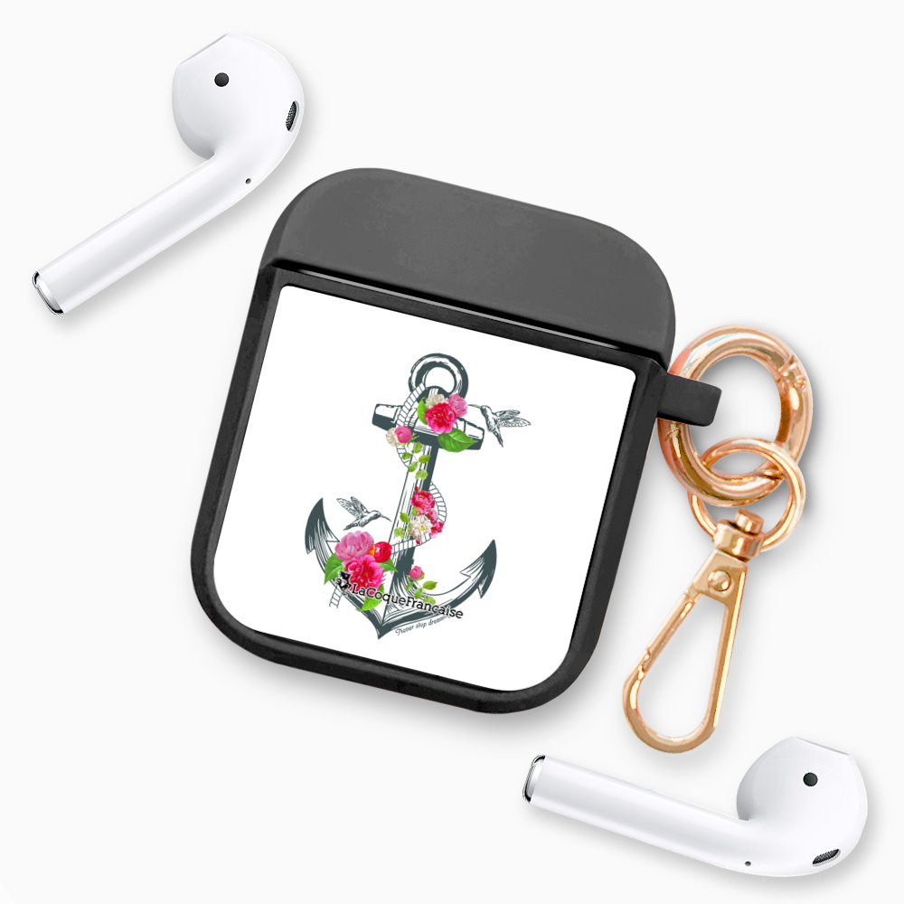 • > High Tech>Audio>Accessoires Airpod>Housse pour airpods silicone liquide noir Ancre Motif Ecriture Tendance La Coque Francaise