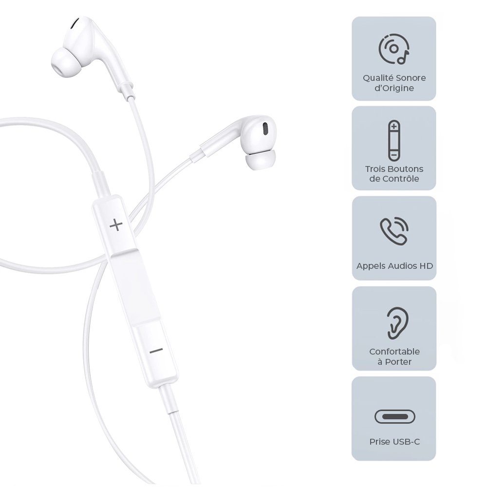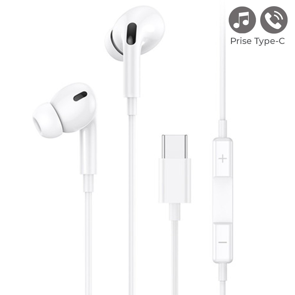 • > Écouteurs filaires intra-auriculaires avec prise Type C et microphone 1,2 m- blanc