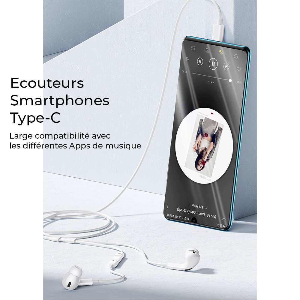 • Ecouteurs filaires blanc entrée Type C