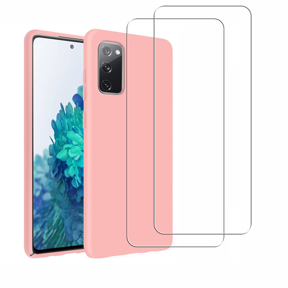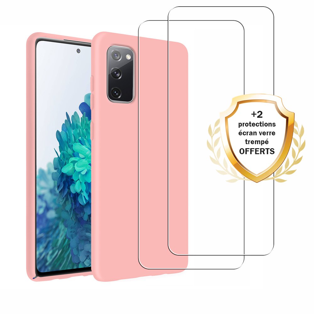• Coque Samsung Galaxy S20 FE Silicone liquide Rose + 2 Vitres en Verre trempé Protection écran Antichocs