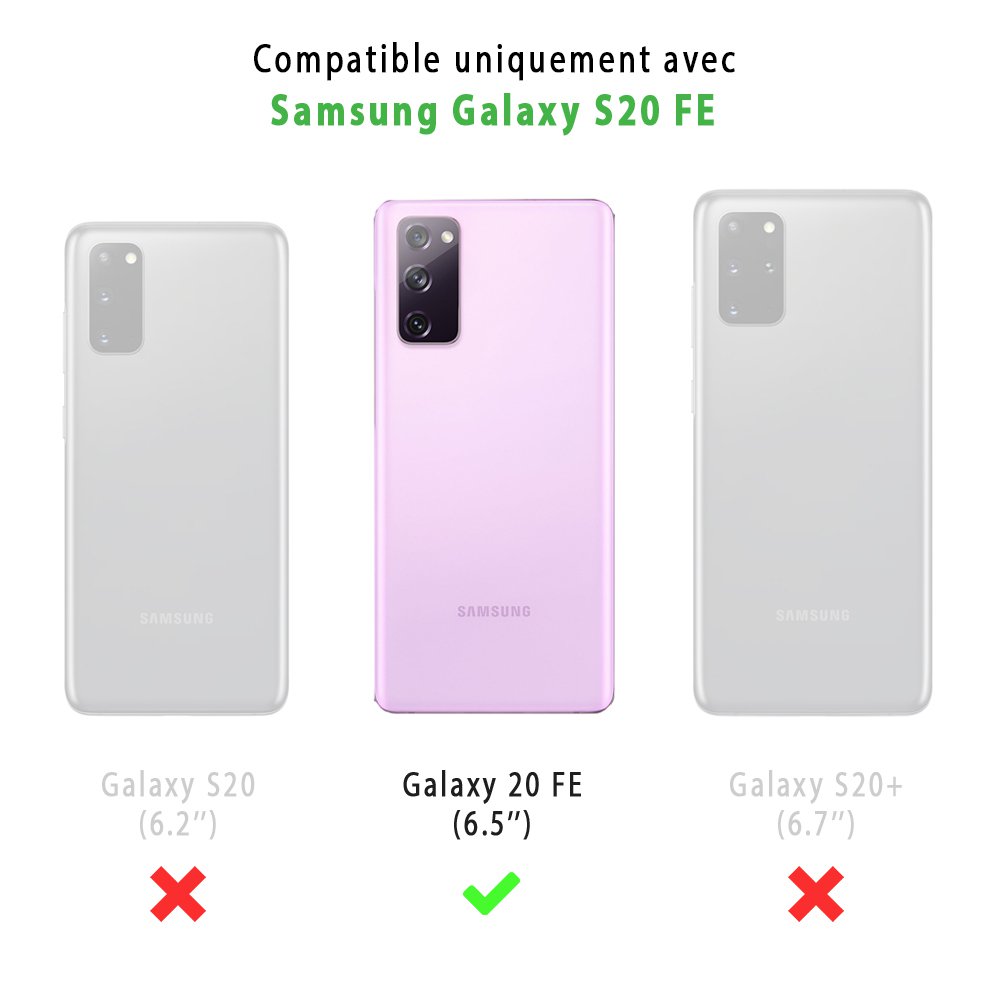 Coque souple au toucher doux ultra resistante spécialement Samsung Galaxy S20 FE. Pack coque anti-choc + 2 Vitres en verre trempé pour une protection intégrale de votre Galaxy S20 FE contre les chocs, les rayures et la poussière. Les fonctionnalités tactiles de l'écran sont préservées. Compatible avec chargement sans fil (induction)