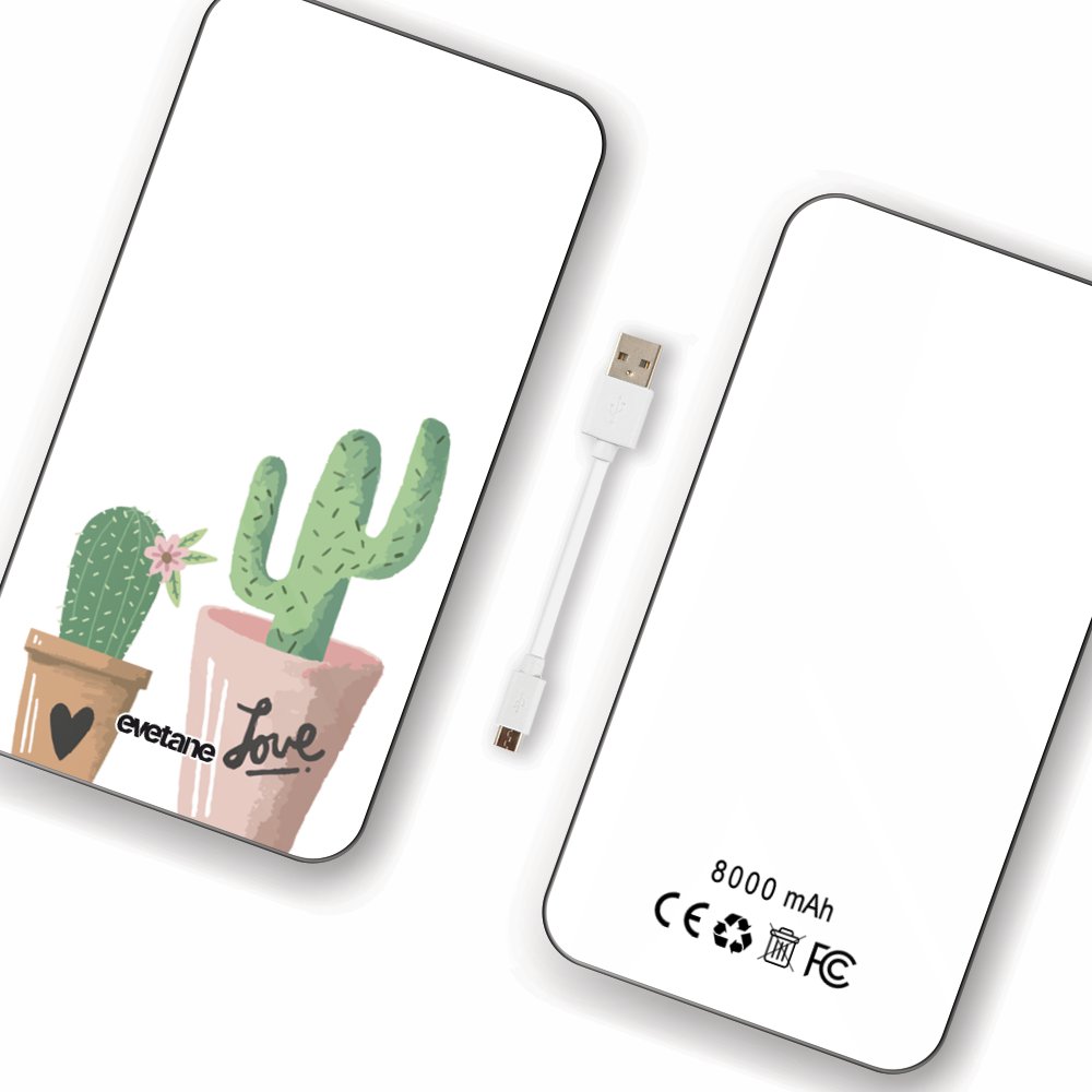 Batterie Batterie verre trempé 8000mAh Cactus Love Motif Ecriture Tendance Evetane