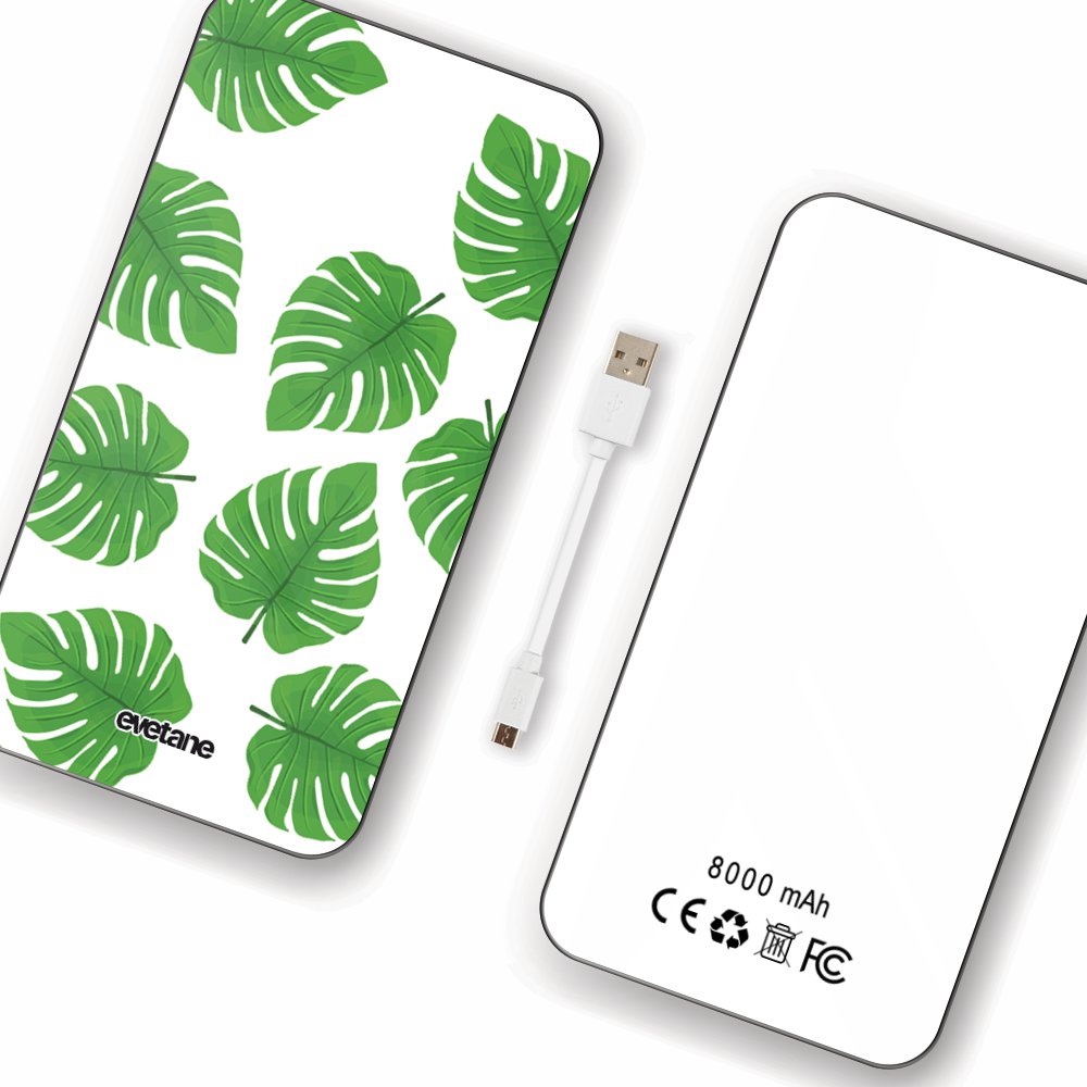 Batterie Batterie verre trempé 8000mAh Feuilles palmiers Motif Ecriture Tendance Evetane
