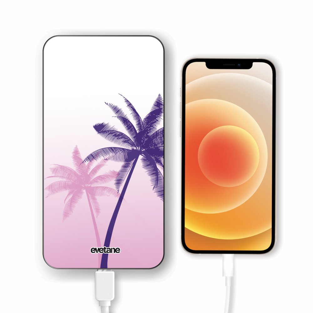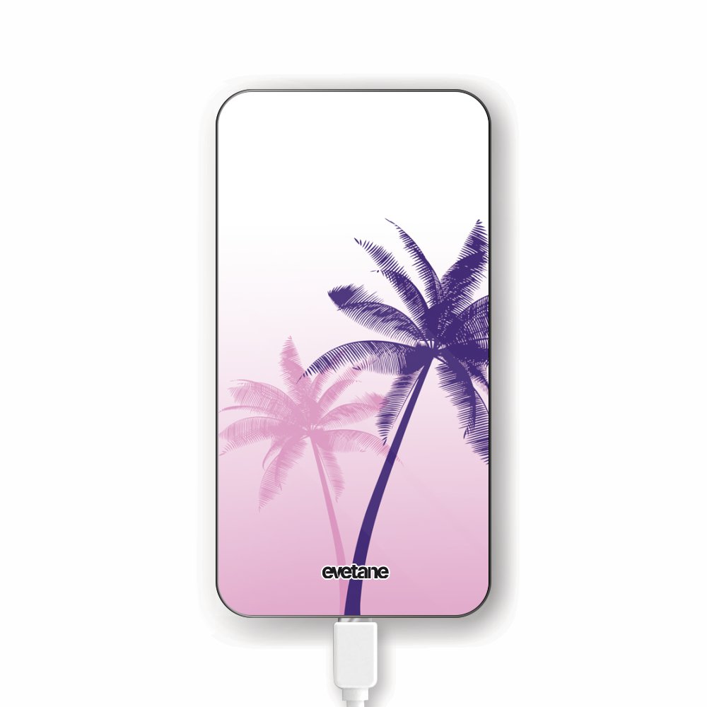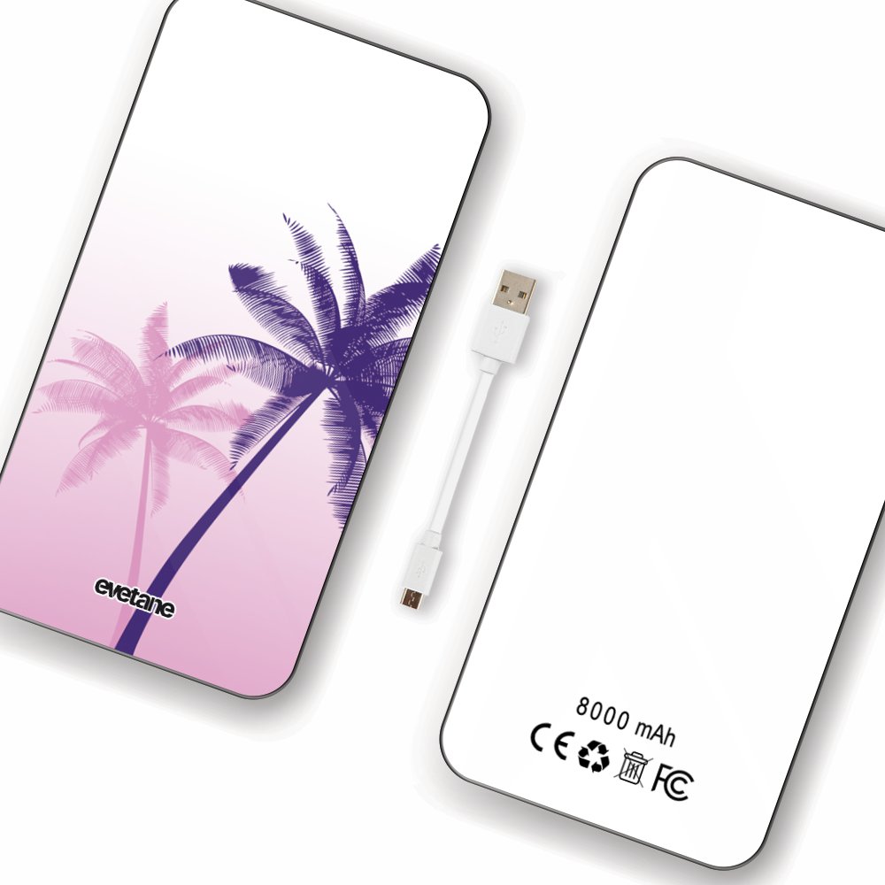 Batterie Batterie verre trempé 8000mAh Palmiers et Dégradé Motif Ecriture Tendance Evetane