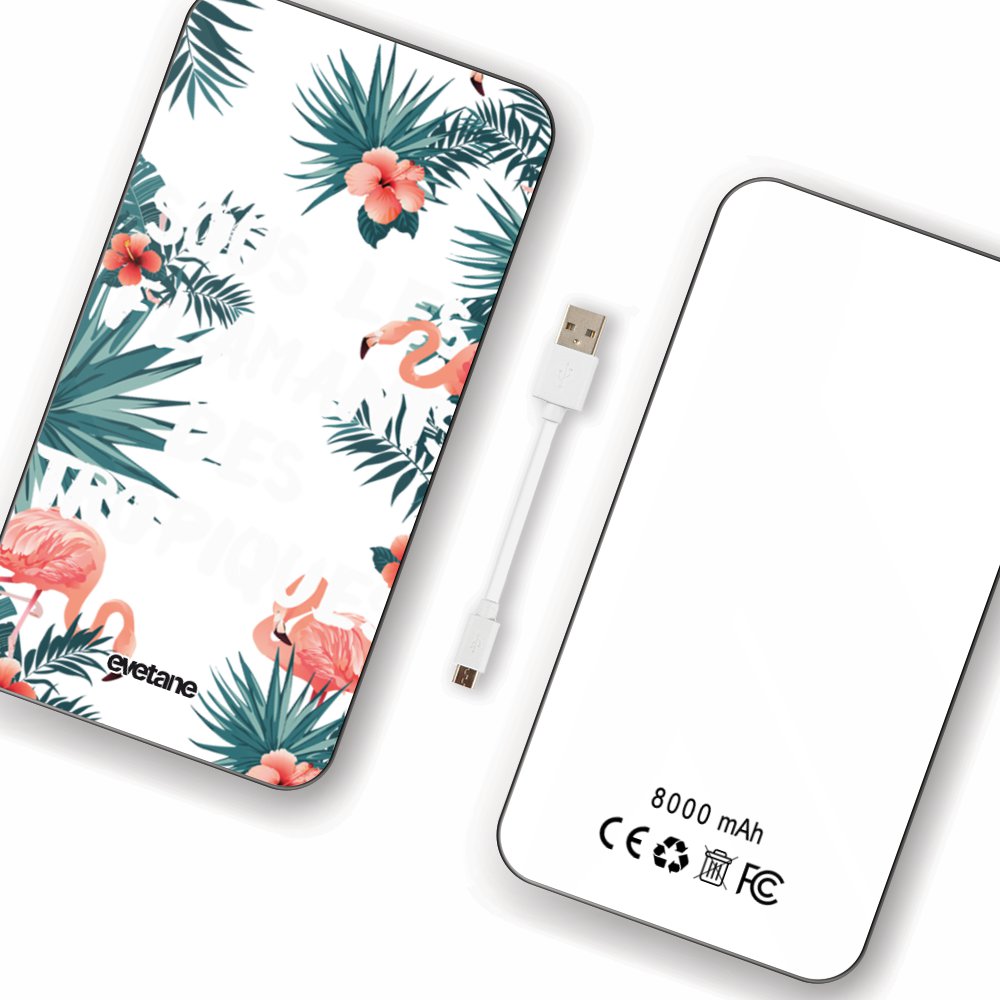 Batterie Batterie verre trempé 8000mAh Flamants des tropiques Motif Ecriture Tendance Evetane