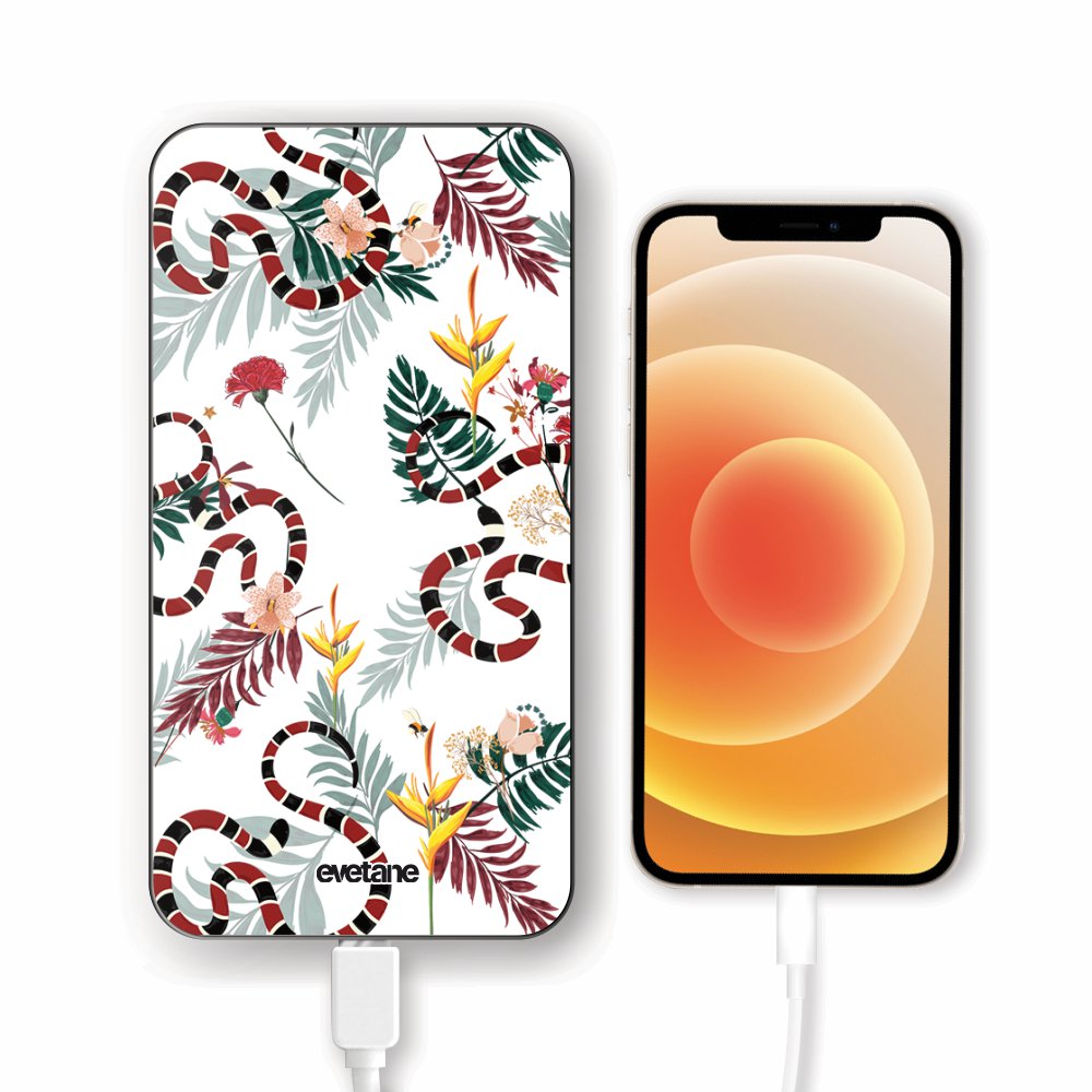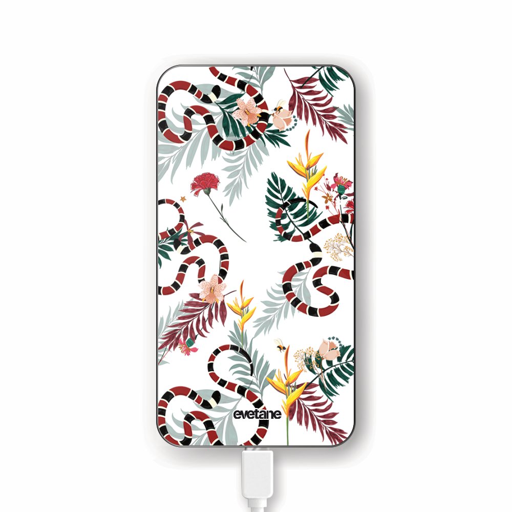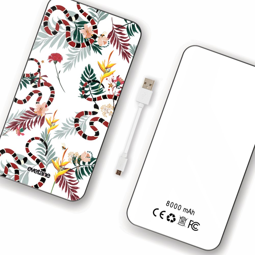 Batterie verre trempé 8000mAh Serpents et fleurs Motif Ecriture Tendance Evetane