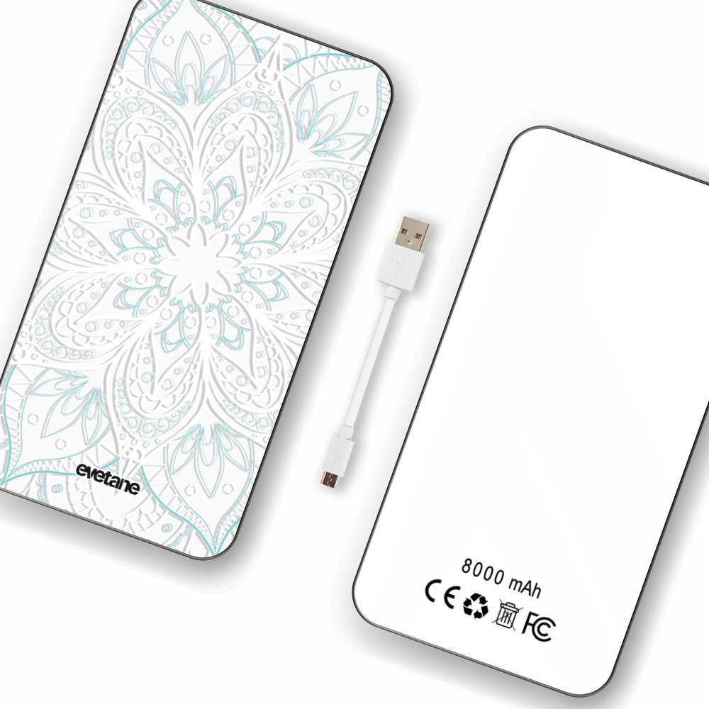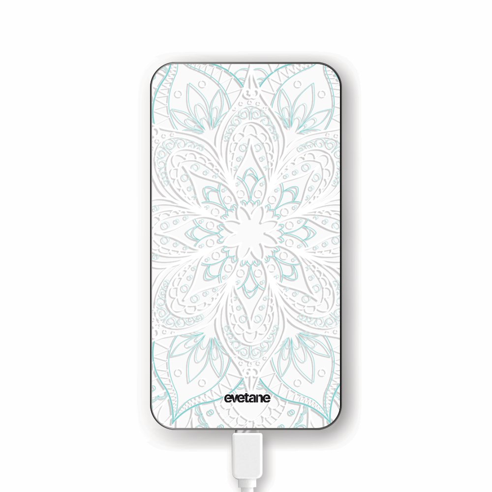 Batterie Batterie verre trempé 8000mAh Mandala Turquoise Motif Ecriture Tendance Evetane