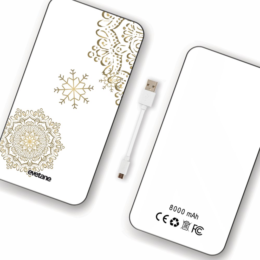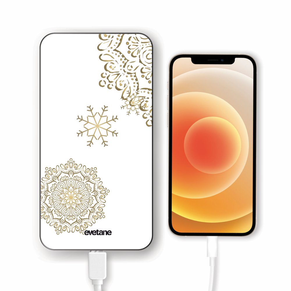 Batterie Batterie verre trempé 8000mAh Flocon mandala Motif Ecriture Tendance Evetane