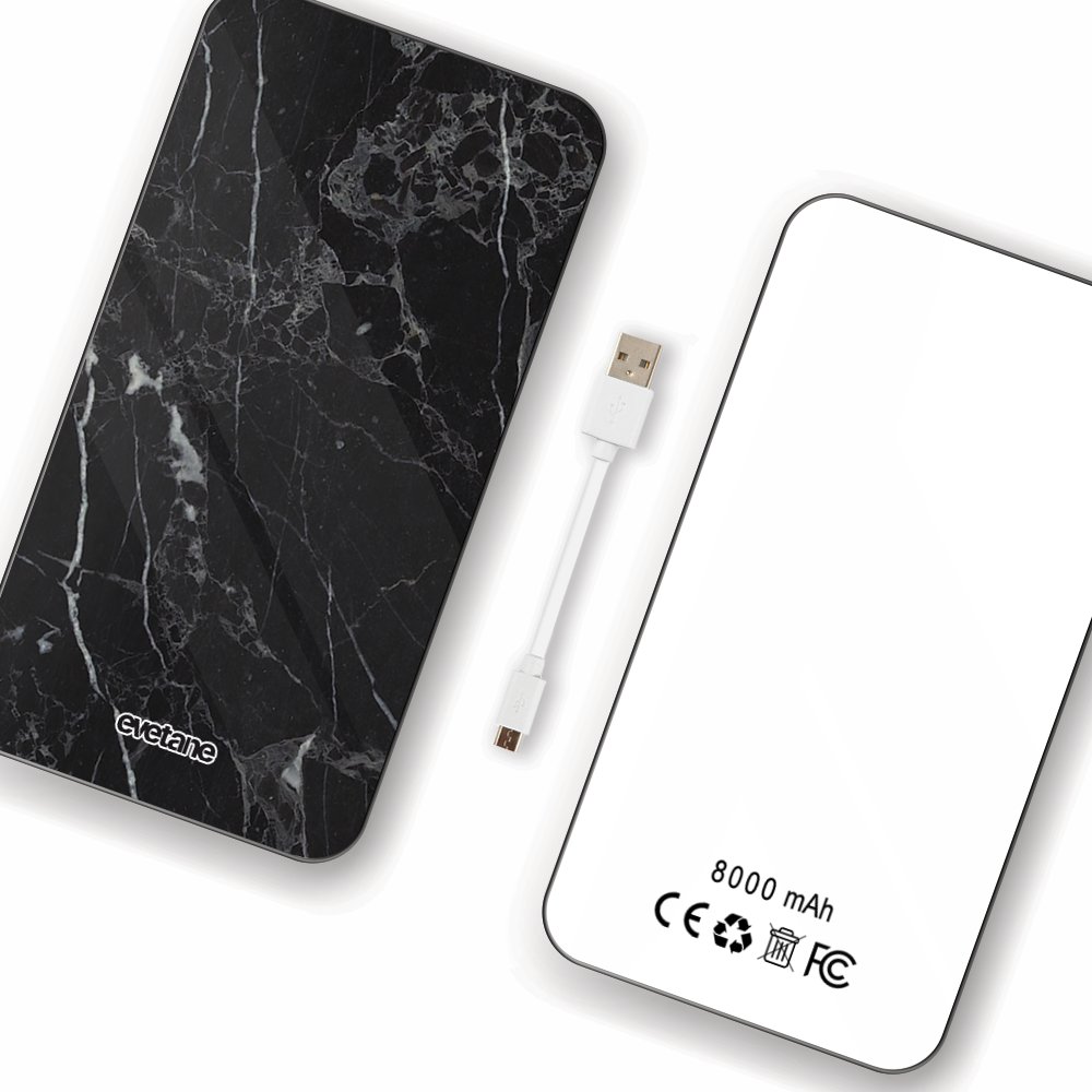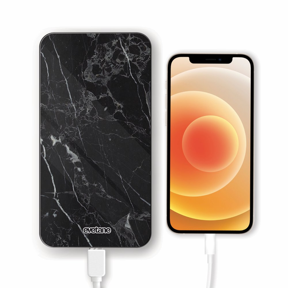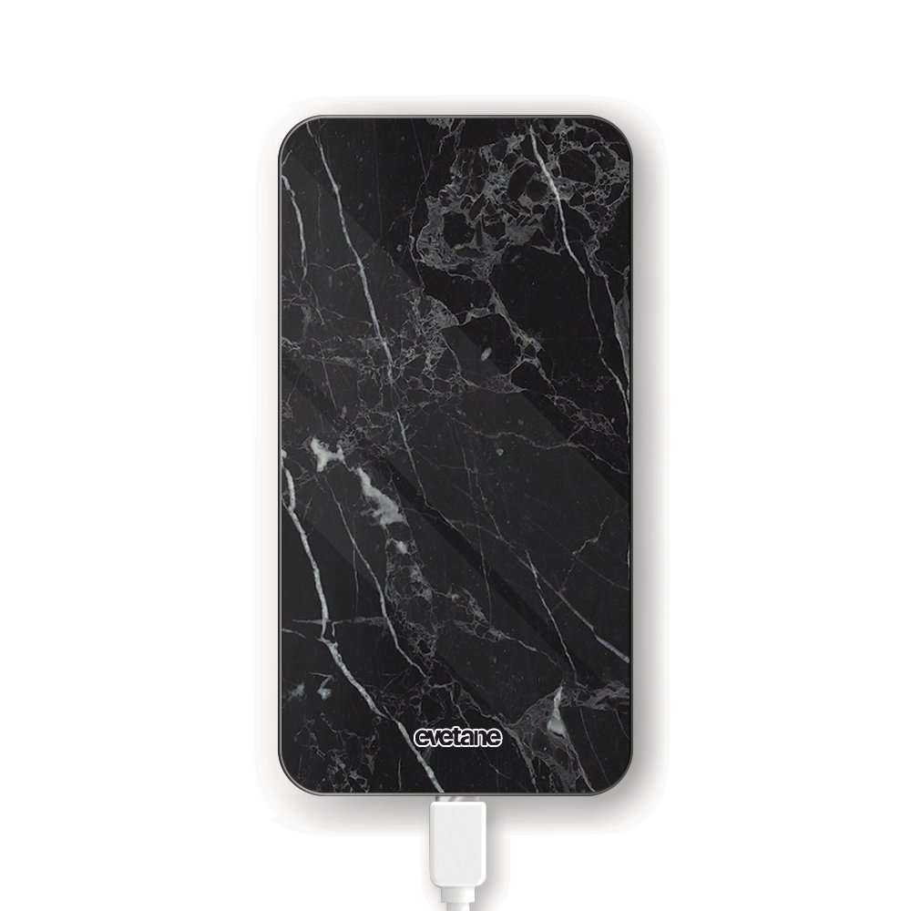 Batterie verre trempé 8000mAh Marbre noir Motif Ecriture Tendance Evetane