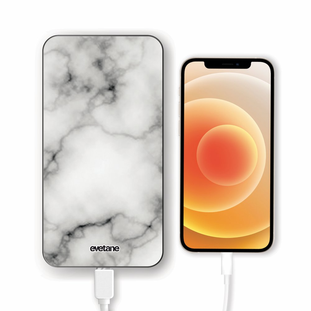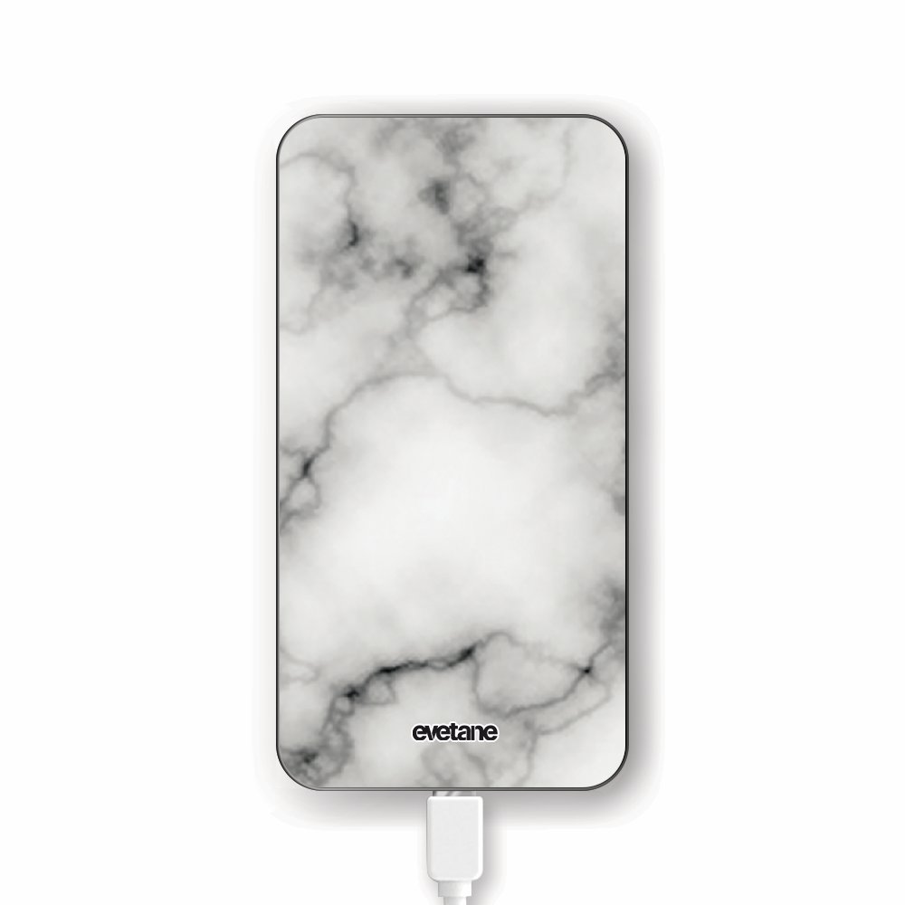 Batterie verre trempé 8000mAh Marbre blanc Motif Ecriture Tendance Evetane